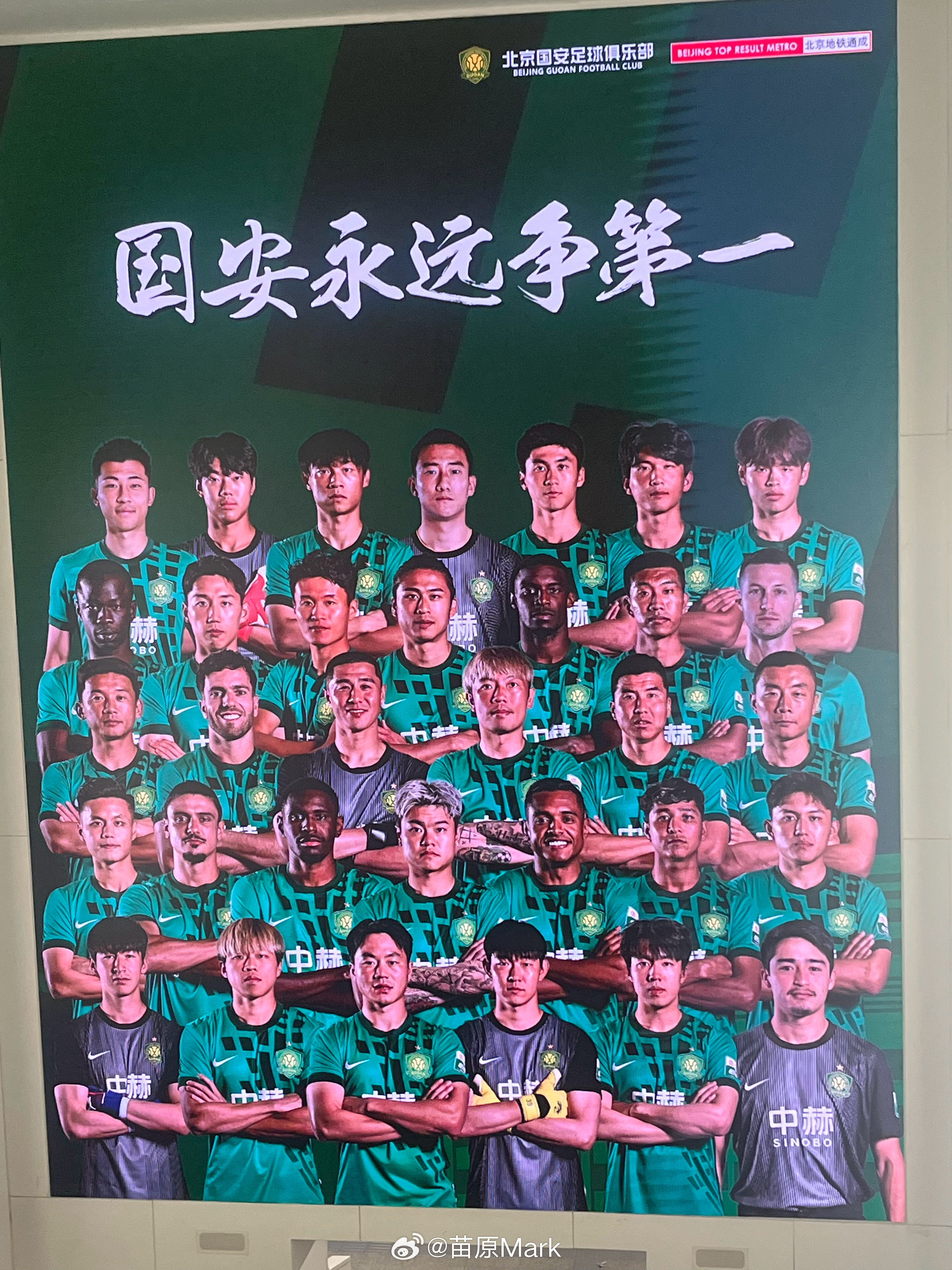 今天踢球正好坐下三号线,工体站里面贴满国安元素,到处都是。