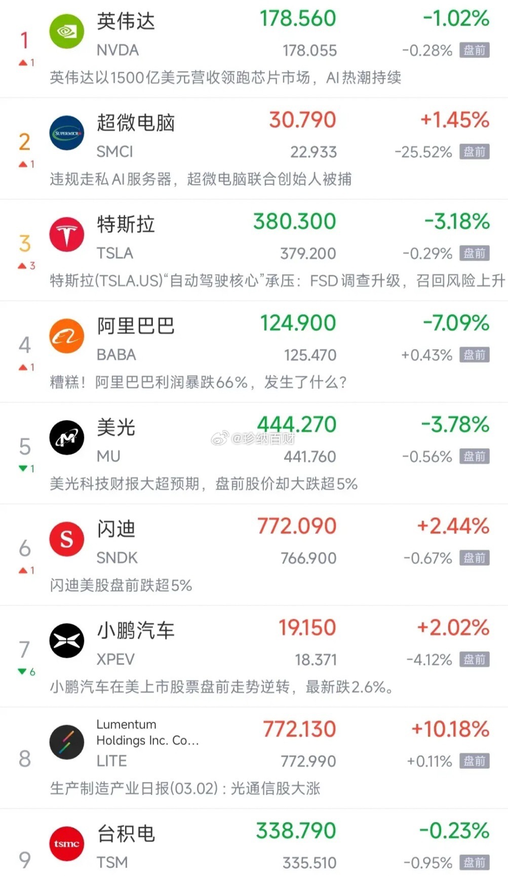 美股今天晚上这是要搞事情,原油也救不了了吗?今天A股大跌,主要就是白天原油价格突破了105美元,这让市场无限恐慌。但是晚上布伦特原油已经跌到了103美元以下,但是美股盘前并不乐观,纳斯达克指数期货目前跌超5%,而英伟达盘前跌0.28%,苹果盘前跌0.78%,谷歌盘前跌0.64%。