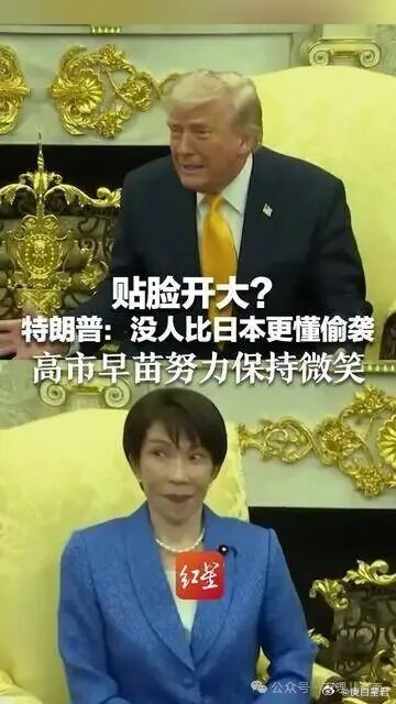 特朗普的外交,从来都是这样的三板斧:极限施压、语出惊人、唯利是图。他把房地产商做交易的那套搬到了国际舞台,激化矛盾、制造话题,然后在混乱中谋取美国的短期利益。他不在乎这话会不会让高市早苗下不来台,不在乎会不会打破美日几十年的和解氛围,他只在乎两件事:一是为自己突袭伊朗的行为找个看似合理的借口,二是敲打一下日本,让日本记着,谁才是美日同盟里的老大。毕竟在他眼里,盟友不是伙伴,只是棋子,棋子就该有棋子的觉悟,哪怕被当众羞辱,也得乖乖听话。而现场的那阵哄笑,更像是这场独角戏的背景音,衬出特朗普的肆无忌惮,也衬出外交规则的苍白无力。其次,高市早苗的当场蚌埠住了,看似是个人的尴尬,实则是日本在美日同盟中寄人篱下的真实写照。说白了,日本在这场同盟里,从来都不是平等的伙伴,只是美国的附庸,连被羞辱的资格,都得捏在人家手里。高市早苗这次来白宫,本是抱着抱大腿的心思来的,想和特朗普搞好关系,推动美日关系进入所谓的“黄金时代”,还想着跟着美国混军事、搞经济,甚至准备了不少大礼。为了讨好特朗普,她此前的种种表现都被日本网民骂“谄媚”,说她像特朗普的“狂热支持者”,可即便如此低姿态,还是没躲过特朗普的珍珠港暴击。她为啥不敢反驳?为啥只能坐在那里如坐针毡?因为日本没得选。二战后,美国主导了对日本的占领,给日本套上了“和平主义宪法”的紧箍咒,让日本放弃了战争权,国家安全只能依赖美国的保护。从那时候起,美日同盟就注定是一场“不对等的恋爱”,美国是高高在上的甲方,日本是小心翼翼的乙方,乙方想从甲方那里得到保护、得到利益,就必须忍气吞声,哪怕甲方当众打自己的脸,也只能笑着受着。你看,高市早苗的表情变化,从笑嘻嘻到笑容凝固,再到双目圆睁,这一系列的反应,把日本的无奈演得淋漓尽致。她心里估计把特朗普骂了八百遍,可脸上连一点不满都不敢露,因为她知道,自己的一言一行,都关系到日本的利益。