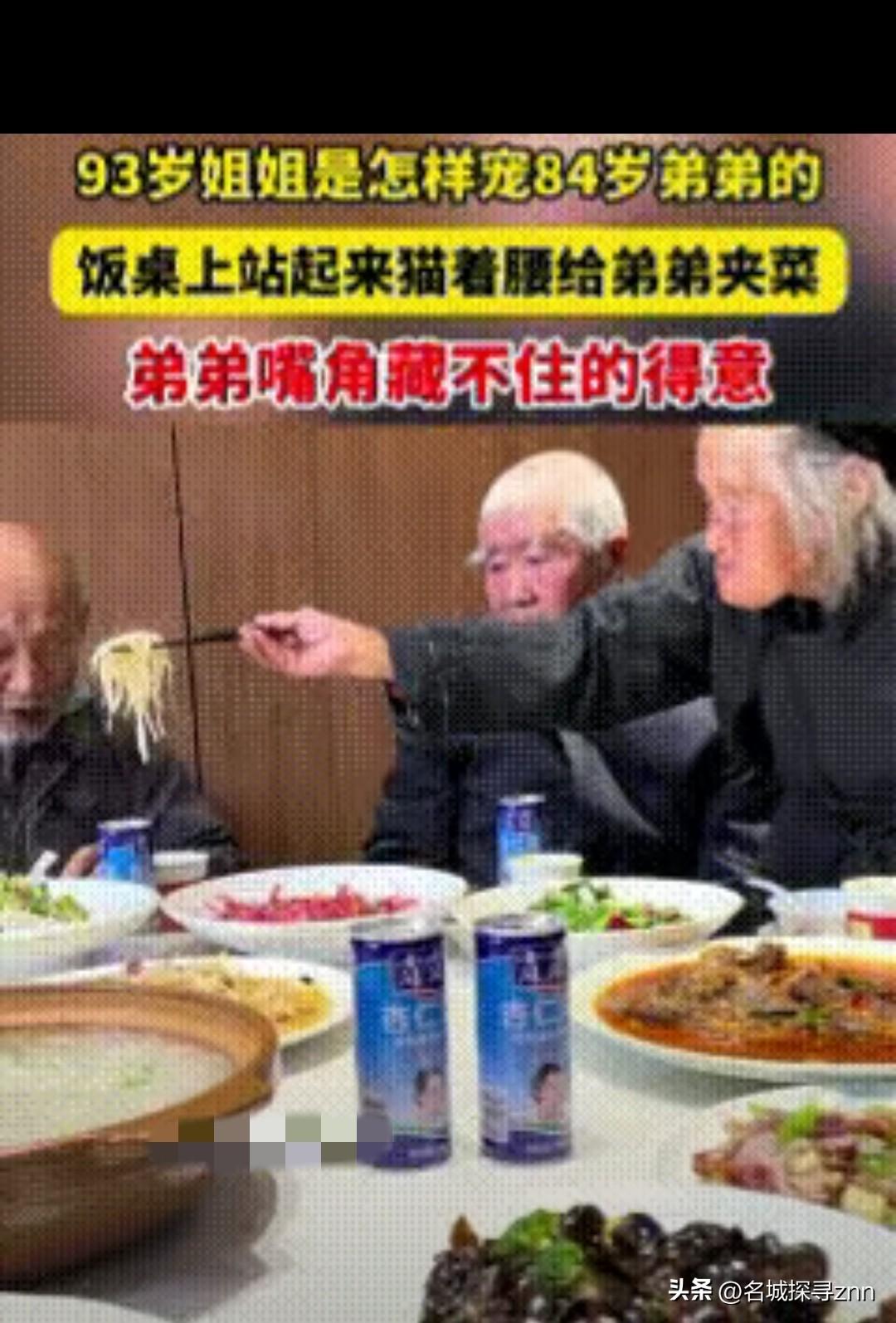 “藏不住”!3月20日,陕西一家,几位老人难得相聚一堂,吃饭时93岁的姐姐起身弯腰给84岁的弟弟夹菜,看到这一幕时拍摄的晚辈们温馨笑了起来。 93岁的姐姐和84岁的弟弟,是家里年纪最长的两位长辈,平日里各自跟着晚辈生活,住得不算近,能凑到一张饭桌上吃饭,要等上好几个月的时间。 这次相聚,晚辈们特意提前准备了两位老人爱吃的饭菜,就想让老人们好好叙叙旧。 饭桌上的气氛格外热闹,晚辈们轮番给老人敬酒夹菜,姐姐却始终把目光落在弟弟身上。 她记得弟弟牙口不好,爱吃软嫩的菜品,也记得他偏爱清淡的口味,没等晚辈们动手,她先颤巍巍地站起身,微微猫着腰,伸长胳膊去够弟弟面前的那盘面条,筷子稳稳夹住一筷子面,慢慢递到弟弟碗里。 弟弟坐在对面,看着姐姐费力的模样,嘴角不自觉地往上扬,藏不住的得意劲儿漫在脸上。他像个没长大的孩子一样,低头扒拉着碗里的面,时不时抬头看姐姐一眼,眼神里满是依赖。 在他的记忆里,从很小的时候起,姐姐就总是这样护着他,有好吃的先留给他,受了委屈姐姐第一个站出来护着他,哪怕如今他已经84岁,头发全白,在姐姐眼里,他依旧是那个需要被照顾的小弟弟。 晚辈们举着手机,悄悄记录下这一幕,没有刻意打扰,只是看着两位老人的互动,忍不住弯起嘴角。有人说,这大概是世界上最珍贵的画面,93岁的姐姐还能给84岁的弟弟夹菜,这份跨越了大半个世纪的姐弟情,比任何山珍海味都要动人。 姐姐的身体不算硬朗,起身弯腰都要缓上好一会儿,可给弟弟夹菜的动作却格外熟练,没有丝毫犹豫。 她嘴里还念叨着,让弟弟多吃点,慢点吃,别噎着,语气里的宠溺,和几十年前一模一样。弟弟也乖乖听着,点头应着,像个听话的孩子,全然没有平日里在晚辈面前的威严模样。 这场相聚,没有华丽的排场,没有贵重的礼物,只有两位老人之间最朴素的牵挂与疼爱。93岁的姐姐用行动告诉所有人,不管岁月如何变迁,不管年纪长到多大,在姐姐的心里,弟弟永远是那个需要被疼爱的孩子。 而84岁的弟弟,也用藏不住的得意,回应着姐姐的宠爱,这份纯粹的亲情,没有丝毫杂质,温暖了在场的每一个人。 视频传到网上后,无数网友被这份高龄姐弟情打动。有人感慨,能在84岁的年纪,还能被93岁的姐姐宠着,是这辈子最幸福的事; 有人说,看到这一幕,想起了自己的长辈,原来亲情从来都不会被时间冲淡,只会随着岁月沉淀得更加深厚;还有人说,这才是最珍贵的家风,是晚辈们最好的榜样。 93岁与84岁,这两个数字背后,是大半个世纪的相守与陪伴,是刻在骨子里的牵挂与疼爱。 在这个快节奏的时代,太多人忙着奔波,忽略了身边的亲情,而这两位老人的互动,却像一股暖流,提醒着我们,最珍贵的东西,从来都在身边,是长辈的一句叮嘱,是亲人的一个眼神,是跨越年龄的宠爱与守护。 这份藏不住的宠爱,是岁月给的礼物,是亲情最动人的模样。它告诉我们,不管走多远,不管长多大,家永远是最温暖的港湾,亲人永远是最坚实的依靠,而那份纯粹的爱,永远不会被时光打败。 各位读者你们怎么看?欢迎在评论区讨论。