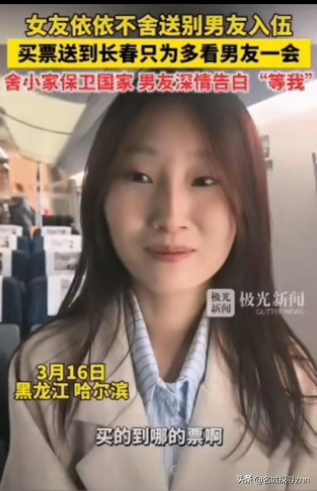 太甜了!黑龙江哈尔滨,一男生参军入伍,没想到,自己女友为了送他,竟然也买了一张到长春的票,其目的只是为了多看男友一会,而女友那害羞的一幕,不得不让人说一句:“太甜了!” 3月16日的哈尔滨车站,男生穿着崭新的迷彩服,胸前别着大红花,正和家人告别,准备踏上前往长春的列车,开启军旅生涯。 他和女友相恋两年,感情一直稳定,得知他要参军的消息后,女友没有半句抱怨,只是默默帮他收拾行李,一遍遍叮嘱他要照顾好自己。 原本说好,女友只在车站送他到检票口,可看着男友转身走向车厢的背影,她心里的不舍突然翻涌上来,脚步不受控制地跟着往前走。 眼看列车即将关门,她咬咬牙,跑到售票窗口,买下了同趟列车到长春的车票,没有别的目的,就想多陪男友走一段路,多看他几眼,哪怕只是短短几个小时。 列车开动后,女生找到自己的座位,恰好就在男友所在车厢的不远处。她不敢太靠近,只是远远看着那个穿着军装的身影,眼里满是温柔与不舍,偶尔和男友对视,她会立刻低下头,脸颊泛起红晕,那害羞的模样,让身边的乘客都忍不住露出笑意。 男生很快发现了女友的身影,他心里又暖又酸,走到女友身边坐下,握着她的手,声音带着一丝沙哑。 他知道,自己这一走,就是很久,不能陪在女友身边,不能和她一起分享生活里的喜怒哀乐,可他别无选择,穿上军装,就意味着要扛起保家卫国的责任,要舍下小家的温暖,去守护更多人的安宁。 女生抬起头,看着男友坚定的眼神,强忍着泪水,轻轻点头。她知道男友的选择,也支持他的理想,只是分别的时刻,终究还是忍不住难过。她没有说太多煽情的话,只是反复说着“我会等你”,简单的四个字,藏着她所有的牵挂与坚守。 男生看着女友泛红的眼眶,心里满是愧疚,他凑到女友耳边,一字一句地说“等我”,这两个字,是他对女友的承诺,也是他对自己的要求,他会在部队好好训练,努力成长,不辜负女友的等待,不辜负国家的期望。 列车缓缓行驶,车厢里的气氛格外安静,只有两人的呼吸声和列车行驶的声音。女生靠在男友的肩膀上,感受着他的温度,心里的不安渐渐平复,她知道,这段等待的日子会很难熬,可她愿意,因为她爱这个有担当的男生,也为他的选择感到骄傲。 几个小时后,列车抵达长春站,男生要下车换乘前往部队的车辆。他站起身,紧紧抱了抱女友,然后转身走向车门,没有回头,他怕自己一回头,就会舍不得离开。 女生站在车厢门口,看着他的背影消失在人群里,眼泪终于忍不住掉了下来,手里还拿着男友塞给她的一颗糖,那是他平时最爱吃的口味,也是他留给她的念想。 这件事被同车厢的乘客拍下来传到网上后,迅速引发了网友的热议。有人感慨,这是最纯粹的爱情,没有华丽的誓言,只有默默的陪伴与坚守;有人称赞男生的担当,舍小家保大家,是真正的男子汉;也有人心疼女生,愿意用漫长的时光去等待,这份深情让人动容。 在这个快节奏的时代,很多人觉得爱情经不起等待,可这对情侣用行动告诉我们,真正的爱情,是相互理解,是相互成就,是在对方追逐理想的时候,愿意站在身后默默支持。 男生用军装守护国家,女生用等待守护爱情,他们的故事,没有惊天动地的情节,却藏着最动人的温暖与力量。 这份跨越距离的爱情,这份舍小家为大家的担当,不仅是两个人的故事,更是无数军人与军属的缩影。他们用自己的选择,诠释着责任与爱的意义,也让我们看到,在这个和平的年代,总有人在默默坚守,总有人在为了更多人的幸福,放弃自己的小温暖。 各位读者你们怎么看?欢迎在评论区讨论。