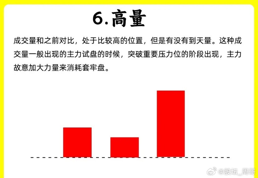 成交量明显高于平均量,当时也没有天量那么大。市场有一个形态就是指的高量,高量不破形态。一般就是上涨趋势初期。