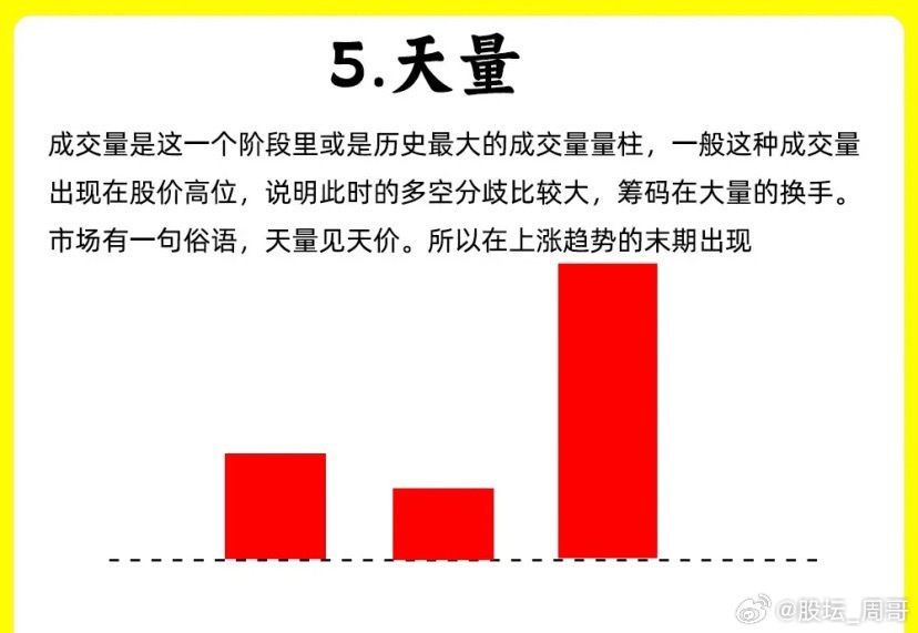 成交量出现最近一段时间,比如30天里,最大成交量,和之前对比,出现明显放大量。这种量柱,一般是出现高位,量柱越大,说明此时的分歧就越大。筹码在大量的换手