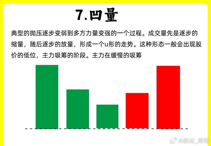 成交量出现逐步的缩量,再到逐步放量的一个过程,就形成两边高,中间低的一个量柱。抛压开始变弱,多方开始变强的一个过程。主力在洗盘的过程里,出现比较多