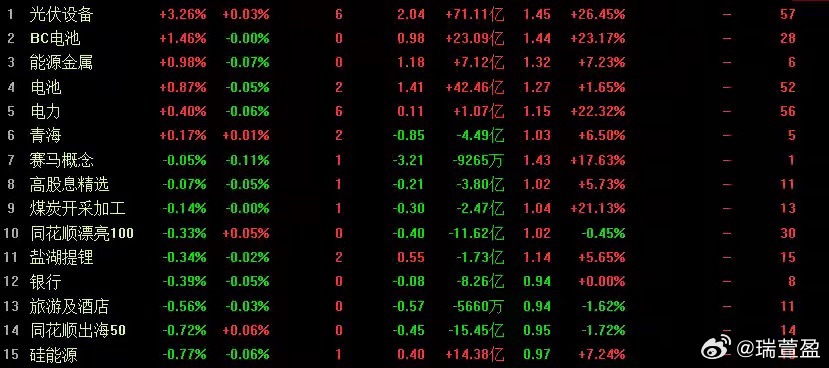 盘面上,光伏设备、电池、能源金属、电力等板块是少数逆势翻红的方向,受短期利好催化,光伏设备盘中一度大涨超7%,领涨全市场。但午后A股出现加速跳水,全线热点集体冲高回落,光伏设备收盘涨幅仅剩3%左右。金融板块全线熄火,银行、证券、保险三大指数全部收跌,证券、保险午后跌幅均超1%。截至收盘,两市下跌个股超过4500家,跌幅超2%的板块多达300个,市场呈现全面普跌格局。