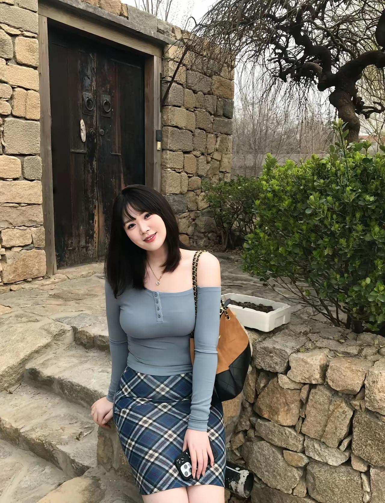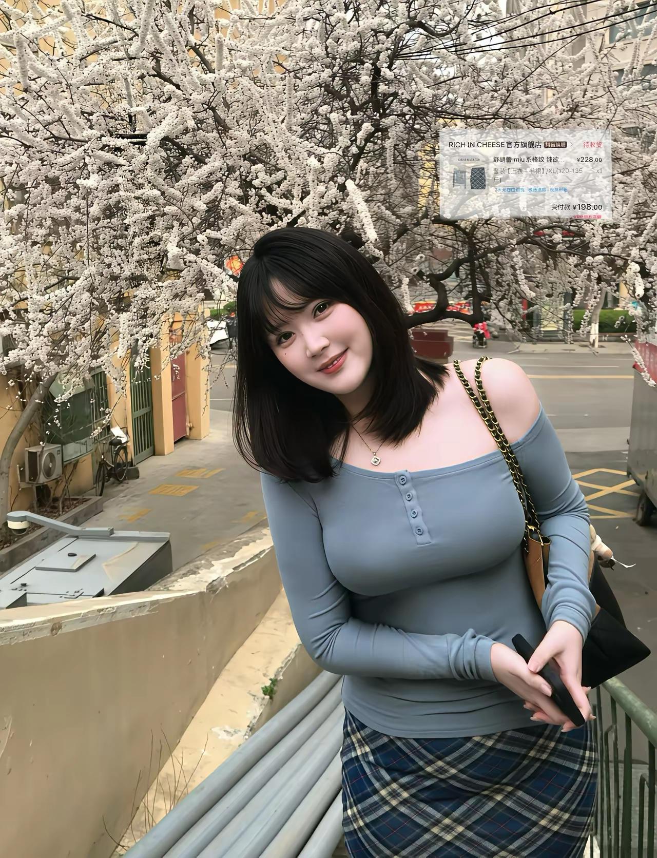 优雅出街,甜美粉色上衣搭配紫色波点裙,手提小包,尽显时尚魅力!