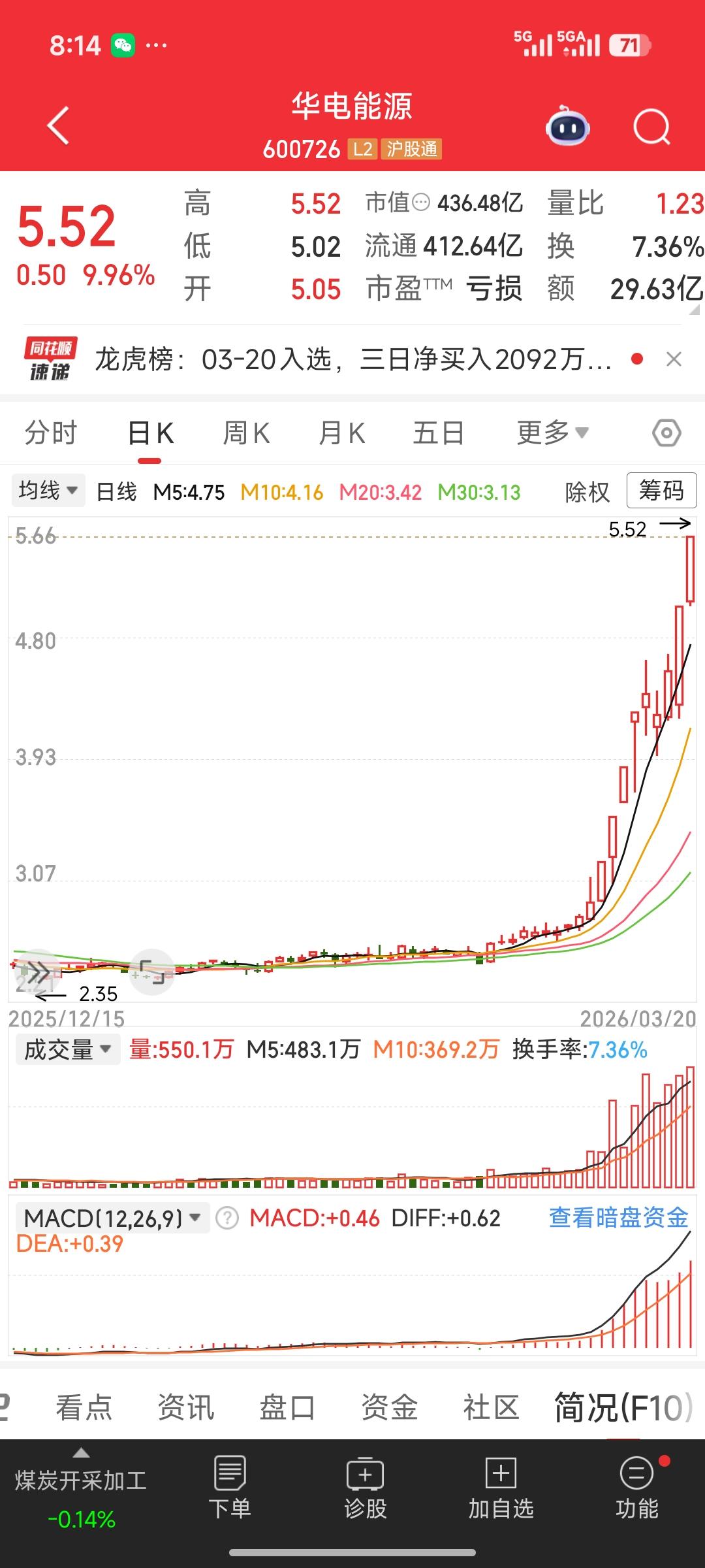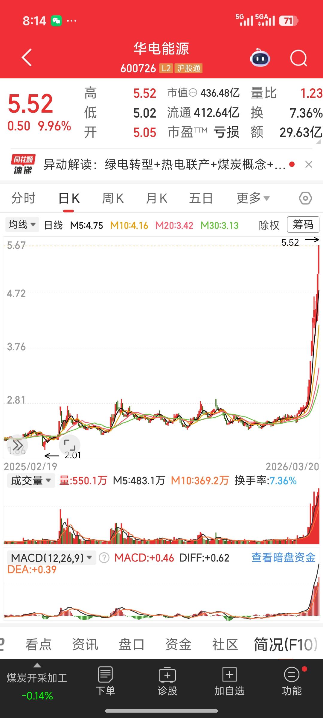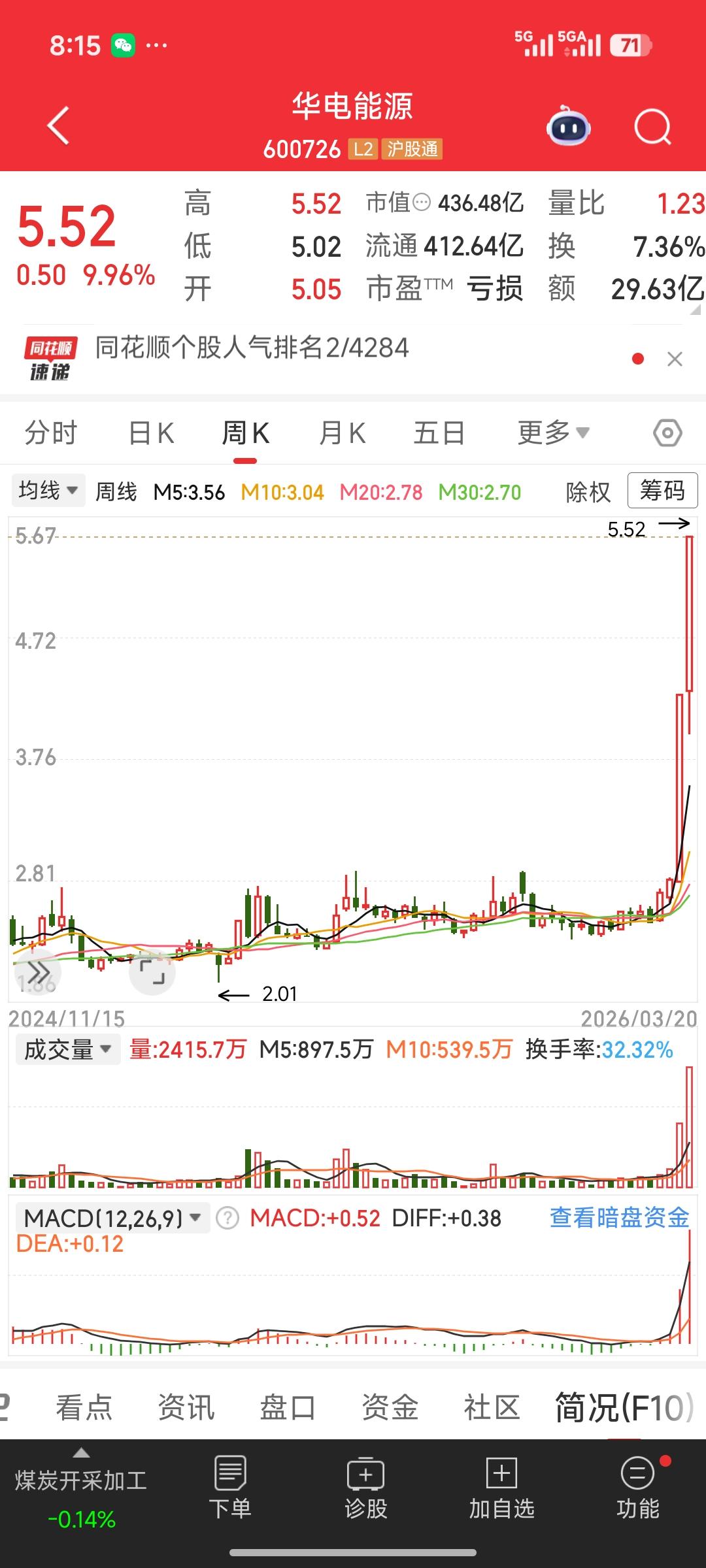 华电能源为啥这么强?逆势连板的底层逻辑拆解 在A股连续回调、超4000股飘绿的背景下,华电能源(600726)却走出独立行情,连日涨停创新高,成为市场最亮眼的“逆市牛股”。这并非主力疯狂炒作,而是多重利好共振下的价值重估。 🔥 核心上涨逻辑 1. 煤电一体化+电价改革红利 公司是东北核心煤电企业,旗下煤矿资源保障供电成本稳定。随着全国电价市场化改革推进,工商业电价上浮空间打开,叠加火电利用小时数提升,公司盈利预期大幅改善,此前亏损局面有望扭转。 2. 东北能源保供政策催化 东北作为老工业基地,能源保供需求持续提升,华电能源作为区域龙头,直接受益于地方政府对煤电企业的补贴与政策倾斜,业绩弹性显著释放。 3. 低价+低估值+困境反转 股价长期处于低位,动态估值处于历史底部,且此前连续亏损,一旦业绩拐点出现,便具备极强的困境反转预期,吸引资金抱团避险。 4. 主力资金抱团取暖 大盘系统性风险下,资金从高位题材股流出,转向具备业绩确定性、安全边际高的公用事业板块,华电能源成为资金避险的核心标的,推动股价持续走强。 💡 投资提示 短期股价已积累较大涨幅,需警惕情绪退潮后的回调风险;中长期需关注煤价走势、电价政策落地及公司年报业绩兑现情况。
