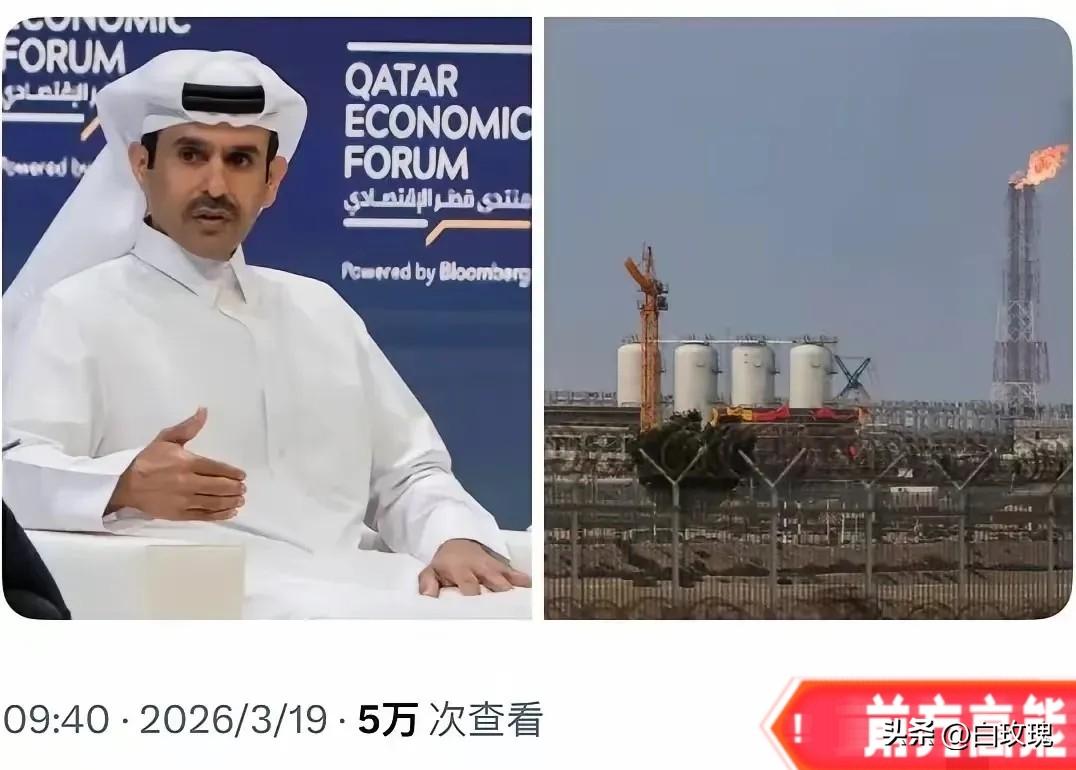 突发新闻:卡塔尔刚刚宣布对意大利、比利时、韩国和中国的液化天然气合同遭遇不可抗力。最长可达5年。 卡塔尔能源大臣卡阿比19日亲口承认,14条LNG生产线被炸坏了2条,两座气转液设施被炸坏1座。每年1280万吨的产能没了,占卡塔尔出口总量的17%。这损失,每年200亿美元。 修复要多久?卡阿比说了,3到5年。而且想修也得先停火,敌对行动不停止,工人都没法进场。这仗打到啥时候,谁说得准? 被坑得最惨的是这几家。意大利和比利时签的是S4生产线的合同,韩国KOGAS和中国签的是S6生产线的合同。现在两条线都趴窝了,合同上的气,一船都发不出来。 韩国那边已经急了。产业部连夜制定应急计划,说储备够用到年底,可心里清楚——明年怎么办?后年怎么办?5年怎么办? 卡塔尔这口气憋得够大的。卡阿比当着全世界的面说,做梦都没想到会被穆斯林兄弟国家在斋月里炸。这话说出来,等于把伊朗架在火上烤。 更惨的还在后头。卡塔尔的凝析油出口要跌24%,液化石油气跌13%,氦气跌14%,石脑油和硫磺各跌6%。从印度饭馆的燃气到韩国芯片厂的氦气,全链条遭殃。 欧洲那边早就绷不住了。荷兰TTF天然气期货一天暴涨超30%,冲到70.70欧元/兆瓦时。德国DAX指数跌2.3%,法国CAC40跌1.73%,高耗能行业全线崩盘。 卡阿比最后撂下一句话:中东发展倒退了10到20年。这话一点不夸张。260亿美元建起来的设施,一颗导弹就报废。恢复?先停火再说。 可伊朗会停吗?美军航母还在外面转悠,以色列还在炸南帕尔斯。这仗不停,气就别想出来。亚洲和欧洲的老百姓,只能干等着涨价。 各位读者你们怎么看?欢迎在评论区讨论。