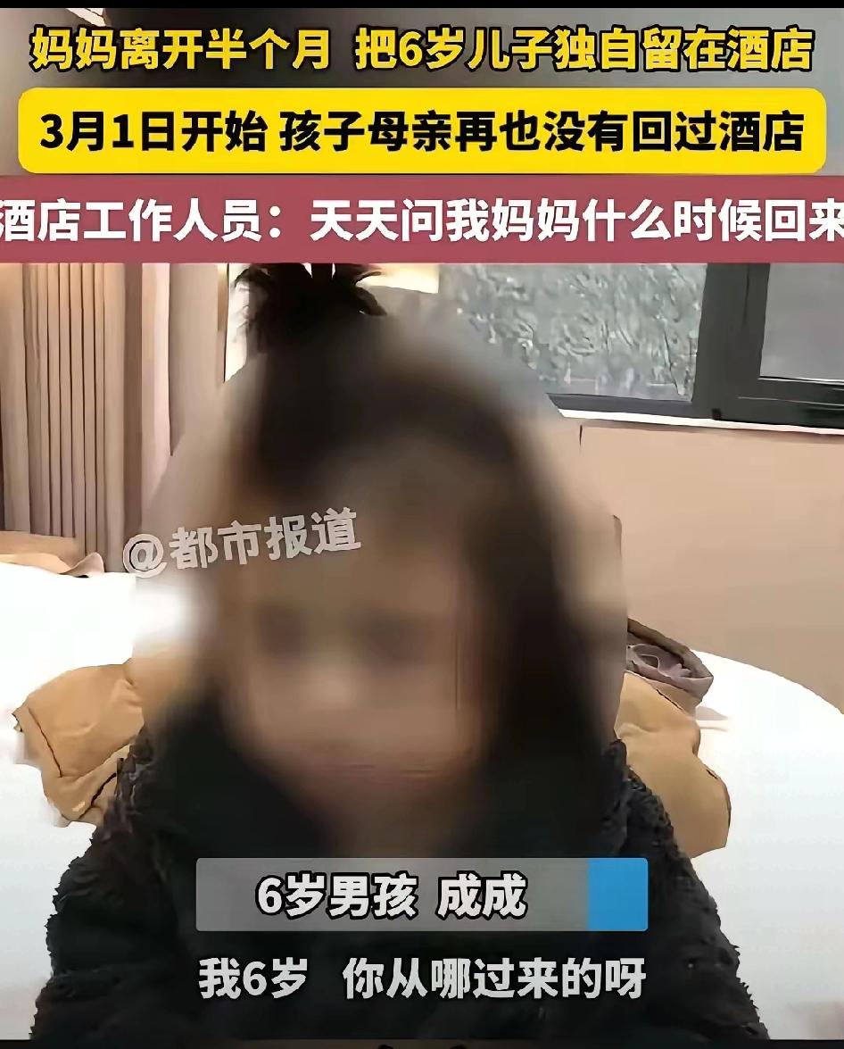 河南,一女子将6岁儿子独自留在酒店,这一留,就是半个月,之后,母亲再也没回过酒店,孩子每天问酒店工作人员,“妈妈什么时候回来”,闻此,众人纷纷红了眼眶。 2026年2月9日,家家户户忙着备年货、迎新年,街头巷尾年味正浓,6岁的成成跟着妈妈从外地来到河南郑州,入住一家连锁酒店。 孩子本以为这场出行满是欢喜,可入住后,母亲频繁将他独自留在陌生客房,深夜外出、清晨方归,归来后便倒头沉睡,极少对孩子流露关心。将年幼的成成单独留在房间,成了那段时间的常态,成成满心害怕与委屈,却始终默默隐忍。 成成懂事得让人心疼,他不敢哭闹抱怨,独自在房间里盯着电视发呆,反复摆弄着几件旧玩具。饥饿时便怯生生地接过酒店工作人员递来的饭菜,静静进食。他内心满是不安,唯一的期盼就是妈妈能早点回来,多看自己一眼。 3月1日,妈妈如常收拾东西出门,此后便彻底失去音讯,电话始终无人接听,偶尔回复的消息也十分敷衍,无论工作人员如何劝说联系,她都未曾再露面,将亲生儿子独自留在了酒店。 从母亲失联起,成成的每一天都在煎熬的等待中度过。他每天紧紧扶着房间门框,瘦小的身子靠在冰凉的门框上,一双大眼睛里满是期盼,又藏着挥之不去的恐惧。 他一次次拉住路过的工作人员,仰着小脸追问:“阿姨,我妈妈什么时候回来呀?”问话让工作人员满心酸涩。夜深人静时,成成抱着磨破洞的小熊玩偶,缩在床边角落,对着智能音箱,带着哭腔用稚嫩的声音轻声问:“你有妈妈吗?”这一句简单的问话,裹着孩子对母亲全部的思念与渴望,也藏着被至亲抛下的无助与惶恐。 酒店保洁、前台工作人员看在眼里疼在心里,不忍孩子独自受委屈,大家轮流照看成成,为他准备热乎的饭菜,悉心照料他的生活。每次看到孩子倚着门框、眼巴巴望向门口的模样,众人都忍不住红了眼眶。 3月16日,酒店无奈之下联系媒体求助,事件曝光后,瞬间牵动了全网网友的心,无数人因孩子的模样潸然泪下。 3月18日,在警方、社区、妇联等多部门联动努力下,工作人员辗转联系到成成母亲的老家,将紧紧抱着小熊、满心不安的成成安全送回老家,暂时由姥爷照料。 截至2026年3月21日,成成妈妈依旧没有现身,未对孩子做出任何解释,也未对自身行为作出回应。姥爷多次主动联系女儿,希望她能承担起母亲的责任、照料孩子,却始终未得到有效回应。目前,警方与妇联等相关部门仍在全力查找成成妈妈的下落,后续将依据调查结果,依法依规处理其监护相关责任。 成成的成长之路本就布满坎坷,他的父母未办理结婚登记,属于非婚生育,两人共同生活时间短暂,成成出生后不久,父亲便离家失联,从未履行过抚养义务,在成成的记忆里,没有任何关于父亲的印象。 此后,成成妈妈独自带着孩子辗转多地打工,收入微薄且不稳定,生活十分拮据。姥爷是成成当下唯一可依靠的亲人,姥爷一家人常年在外务工,家中还要照料身患残疾的小姨,为给小姨治病,家中已花费数十万元,这也成为成成妈妈身上沉重的经济压力。 即便自家经济压力已然沉重,姥爷依旧毫不犹豫地接回成成,悉心临时照料,同时积极配合相关部门,为孩子落实生活保障,还联系专业人员为孩子进行心理疏导,尽全力抚平这38天的经 历在孩子幼小心灵上留下的创伤。 消息来源:网络公开内容,本文配图/视频素材来自网络,仅用于纪实分享与社会观察,如有侵权请联系删除,谢谢!(人物均为化名)
