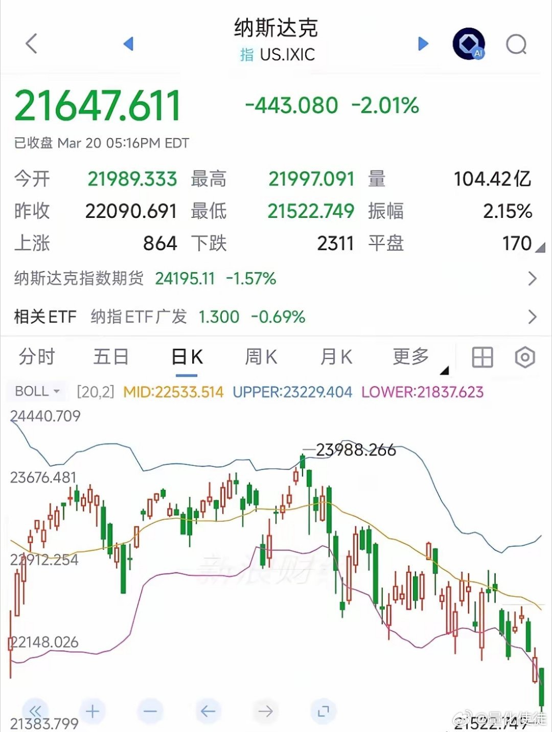 美股这是怎么了,又是暴跌昨晚,美股三大指数全线收跌纳斯达克指数更是暴跌2.01%,完全超出了预期,本周累计跌幅达到了恐怖的4.19%。科技股普遍出现大跌,英伟达3.28%,超微电脑更是暴跌33.32%。布伦特原油再次上涨0.89%,收于104.71美元,本周累计涨幅0.84%。纽约原油上涨2.64%。原油的上涨是造成美股暴跌的其中一个原因,但本周这么大的跌幅还是很少见的,更多的是投资者开始出现恐慌了,才会造成科技股暴跌。