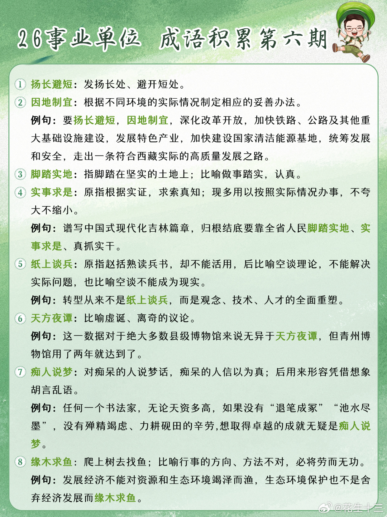26事业单位成语积累第6天扬长避短 因地制宜 脚踏实地 实事求是纸上谈兵 天方夜谭 痴人说梦 缘木求鱼事业单位事业单位联考决战公考开学元气加油站