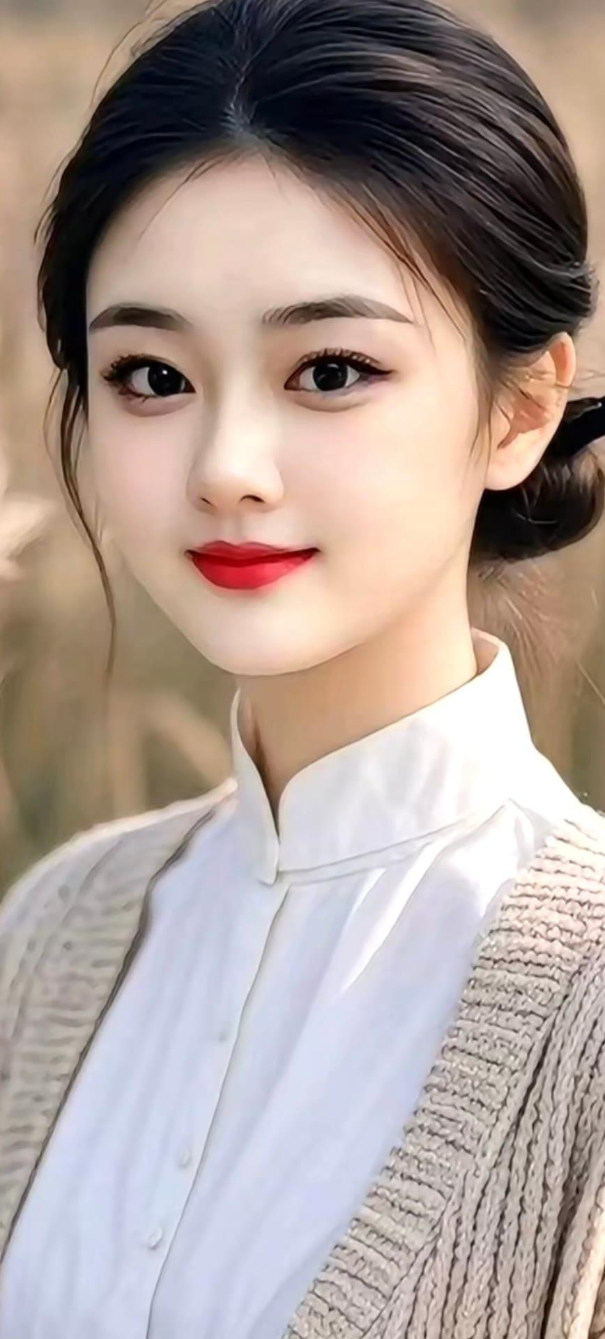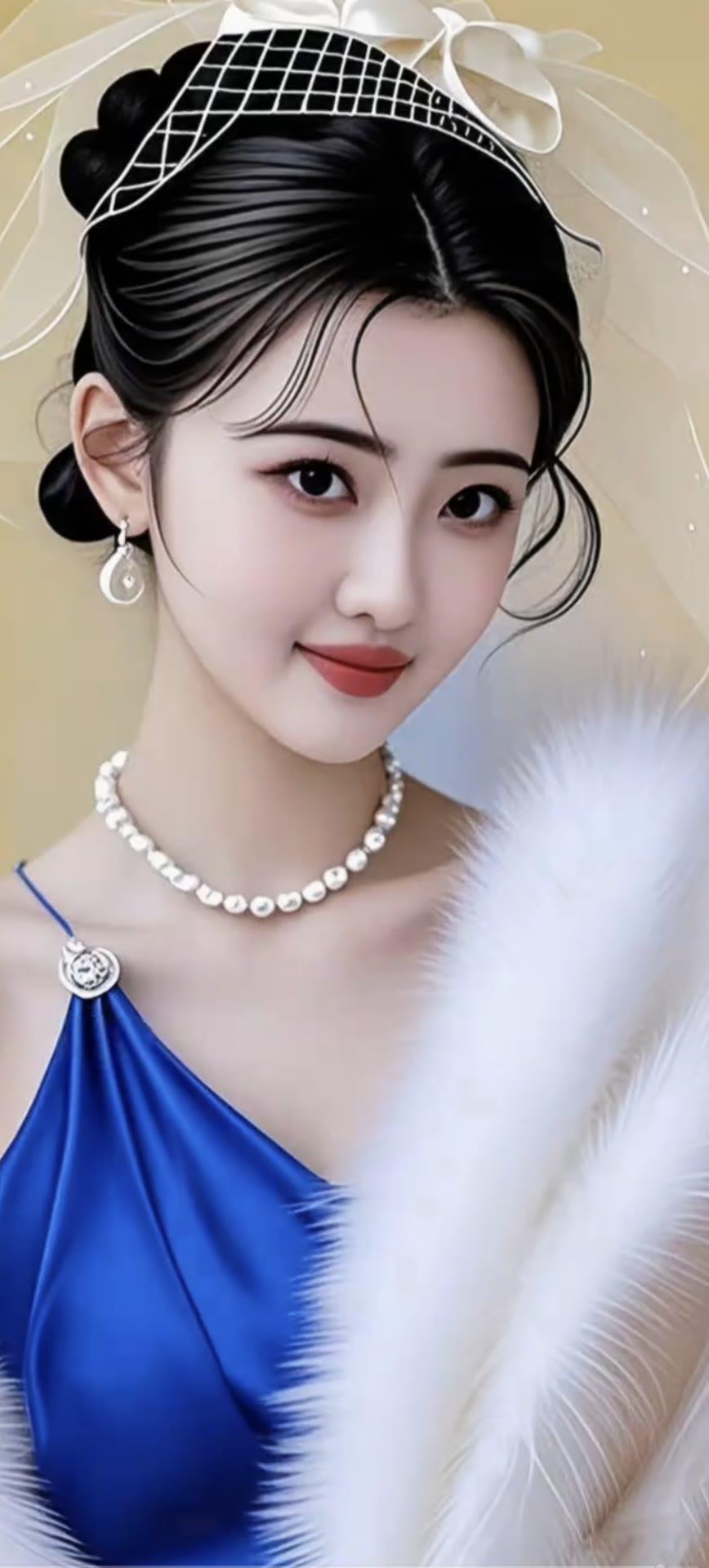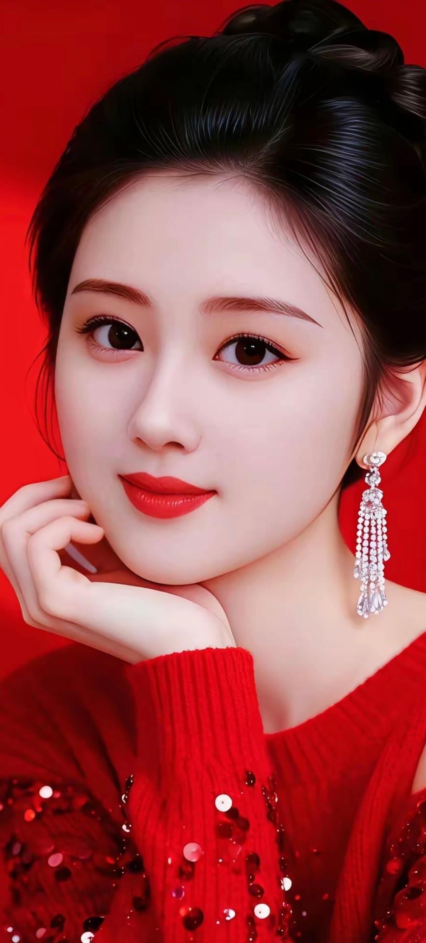 优雅东方美人,白衣红唇,珠光宝气,古典韵味十足。