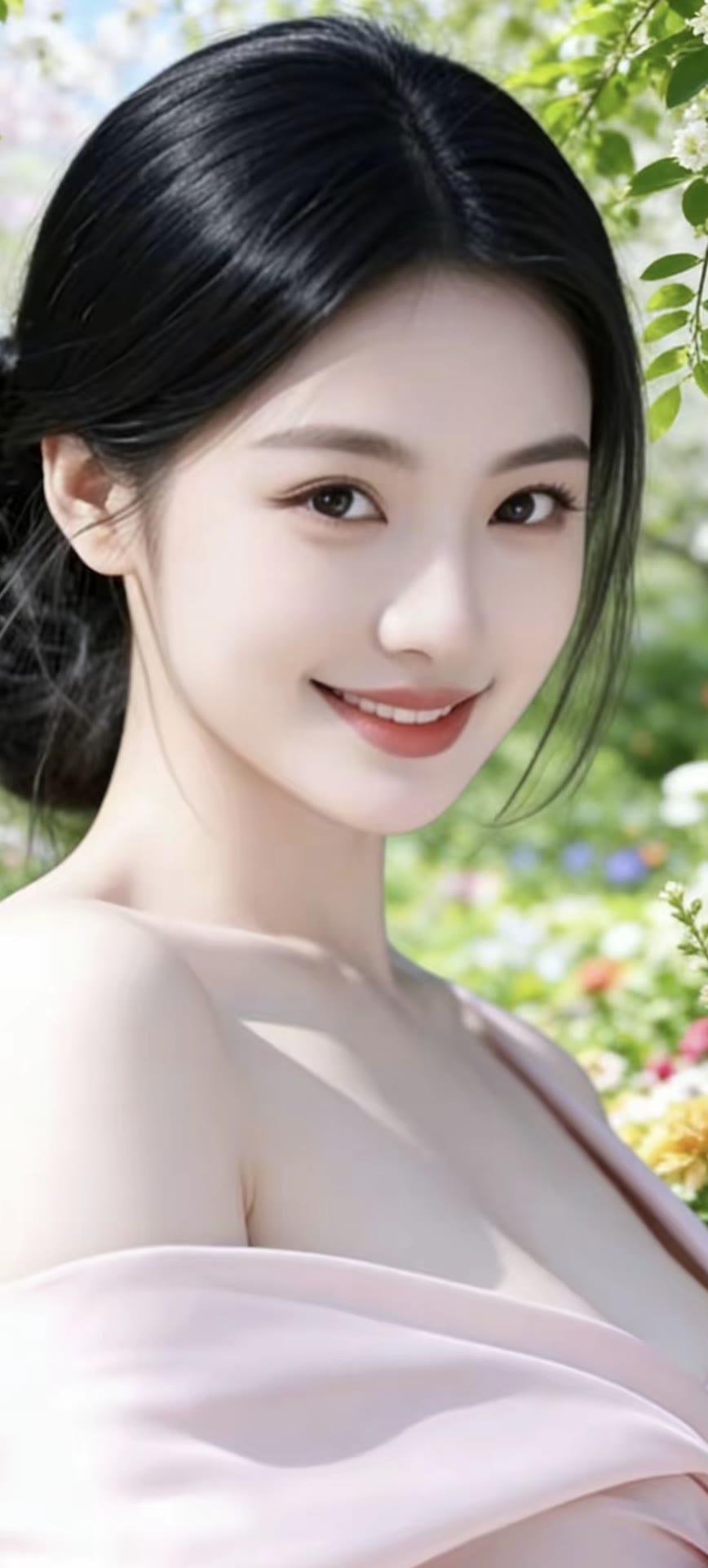 甜美少女风,粉色连衣裙,优雅气质,清新自然。