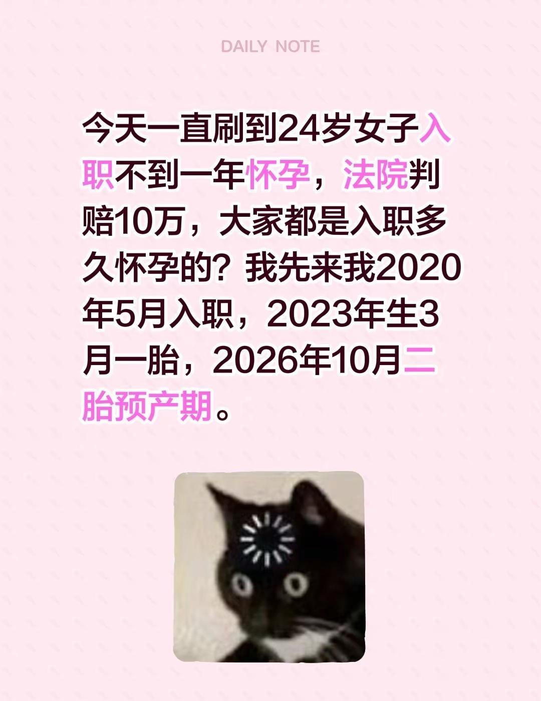 今天一直刷到24岁女子入职不到一年怀孕,法院判赔10万,大家都是入职多久怀孕的?我先来我2020年5月入职,2023年生3月一胎,2026年10月二胎预产期。孕妈