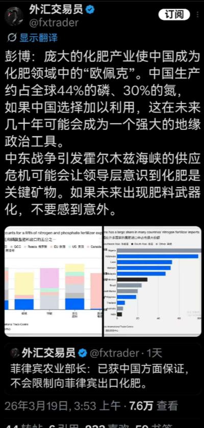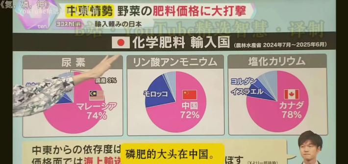 小日子反应迟钝,中国3月14日就已经完全禁止磷肥出口了,出口禁令至少要持续到8月底。 它最近才反应过来。 要知道日本的磷肥几乎完全依赖进口,2025年其72%的磷肥来自中国,而中国磷肥产量占全球44%,如果禁止出口,本子短期内不可能找到其他来源来填补需求缺口,接下来就是肥料缺乏--粮食大幅减产,这可是名副其实的“存亡危机”了 。 中国海关直接停止受理所有磷肥出口申报,就算是已经申报但还没放行的货物,也不给通关,实打实的“零出口、零例外”,目的就是优先保障国内春耕用肥,守住粮食安全的底线。 可日本那边,跟没听见似的,反应慢得离谱。直到最近这几天,才慢慢反应过来,自己要面临大麻烦了。 说句实在的,这反应速度,要是遇到急事,根本来不及补救,也难怪接下来要陷入两难境地。 日本的磷肥,几乎全靠进口,自己国内压根没多少产能。2025年的数据显示,他们72%的磷肥都来自中国,这不是小数目,相当于每100吨磷肥里,就有72吨是从中国运过去的。 而且日本最需要的磷肥核心品类,比如磷酸铵,中国的进口占比更是高达90%,过磷酸钙的进口占比也有80%,可以说中国就是日本磷肥的“命根子”。 可能有人不知道,磷肥对种庄稼有多重要。日本主要种水稻,而水稻从发芽、长根,到开花结果,每一步都离不开磷肥。 缺了磷肥,水稻就会分蘖不足、穗小粒少,产量最少得降20%到40%,米质也会变差,要么卖不上价,要么根本卖不出去。 更关键的是,日本很多土壤都是火山土、泥炭土,本身就缺磷,没有磷肥,地里的庄稼根本长不好。 再看中国的实力,咱们的磷肥产量占了全球的44%,差不多一半的磷肥都是中国生产的,连续多年稳居全球第一。 而且中国的磷矿储量有37亿吨,排名全球第二,磷矿石产量常年占全球的41%,不管是产量还是储量,都有着绝对的优势。全球很多国家的磷肥,都得靠中国供应,日本只是其中之一。 现在中国禁止出口,日本想找其他国家补缺口,根本不现实。全球除了中国,磷肥产量最高的是摩洛哥,2024年也就生产3000万吨,还不到中国的三分之一; 美国年产量2000万吨,大部分都用来做动物饲料添加剂,真正能出口的量少得可怜。剩下的俄罗斯、约旦等国,产量更少,加起来也不够填补日本那72%的缺口。 就算这些国家愿意给日本供货,还有两个绕不开的问题。一是价格,这些国家的磷肥价格比中国的高不少,大规模进口会让日本的种粮成本大幅增加,农民赚不到钱,可能就不愿意种庄稼了。 二是运输,中国到日本的运输距离近、成本低,而从摩洛哥、美国运过去,不仅路途远,运费贵,还得花很长时间,短期内根本赶不上春耕用肥的需求。 更麻烦的是,磷肥短缺不是短期影响。短期来看,日本农民没有足够的磷肥,春耕就会受影响,今年的粮食产量肯定要大幅下降。 长期来看,缺磷时间长了,土壤里的磷会被慢慢耗光,形成“减产—地力下降—再减产”的恶性循环,以后就算有了磷肥,也得花好几年才能恢复地力,到时候粮食短缺会更严重。 日本政府其实早就知道自己的化肥依赖进口,还把磷酸铵列为经济安全保障的重要物资,可就是没提前做好准备,没有建立足够的储备,也没有找好替代供应渠道。 现在中国禁令一实施,他们就慌了神,四处找货源,却发现根本没人能满足他们的需求。 说句不好听的,这都是日本自己造成的。明明知道自己的“命根子”握在别人手里,却不当回事,反应迟钝、准备不足,现在面临肥料缺乏、粮食减产的困境,纯属咎由自取。 民以食为天,粮食不够吃,老百姓的日子就过不下去,对日本来说,这可不是简单的农业问题,而是名副其实的“存亡危机”。 中国禁止磷肥出口,核心是为了保障国内的粮食安全。最近几年,国内春耕用肥需求旺盛,再加上硫磺等原料价格暴涨,磷肥生产成本大幅上升, 要是放任出口,国内就会出现货源紧缺、价格上涨的情况,影响农民种粮的积极性。所以这次禁令,既是保国内春耕,也是对自身资源的保护,完全合情合理。 至于日本,现在再着急也没用,错过了最佳的应对时间,短期内根本找不到解决办法。接下来几个月,他们只能眼睁睁看着肥料缺口越来越大,看着粮食产量不断下降。 这也给所有依赖进口关键物资的国家提了个醒,过度依赖别人,迟早会陷入被动,只有自己掌握主动权,才能避免陷入这样的存亡危机。