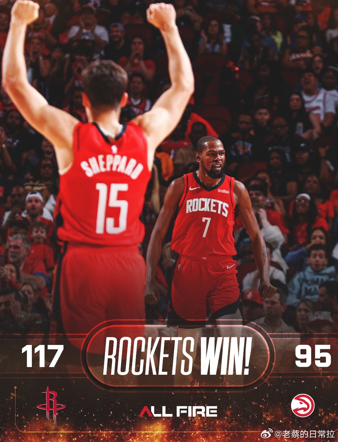 老鹰vs火箭 火箭117-95大胜老鹰,终结对手11连胜!杜兰特高效25分6助攻,小史密斯23分9篮板,申京准三双15+9+10。老鹰沃克21分难救主,全队进攻低迷,连胜遭终结。