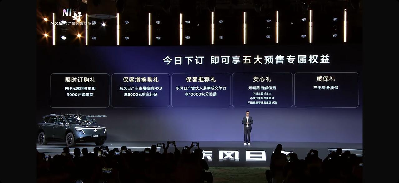 对于中国家庭而言,一辆好车首先要“装得下”。今天开启预售的东风日产NX8在20万级市场交出了一份高分答卷,其空间表现与理想i6差不多,甚至在某些细节上更贴近生活。 2917mm轴距带来1934mm的有效室内长度,配合超宽车身,实现真正的五座大空间,前排坐姿自由,后排跷二郎腿无压力,三人并坐肩部不挤。后排过道最宽450mm,老人小孩进出优雅从容。 储物设计同样用心:773L后备箱满足全家出行需求,纯电车型前备箱达95L,还能临时蓄水保鲜;30处收纳点覆盖水杯、雨伞、电子设备等日常物件。 而NX8的空间不止于静态宽敞,更能随场景切换:前排放平观影、副驾零重力小憩、后排133°大躺甚至变床,让旅途充满松弛感。在20万级区间,NX8用越级空间诠释了什么叫“移动的家”。