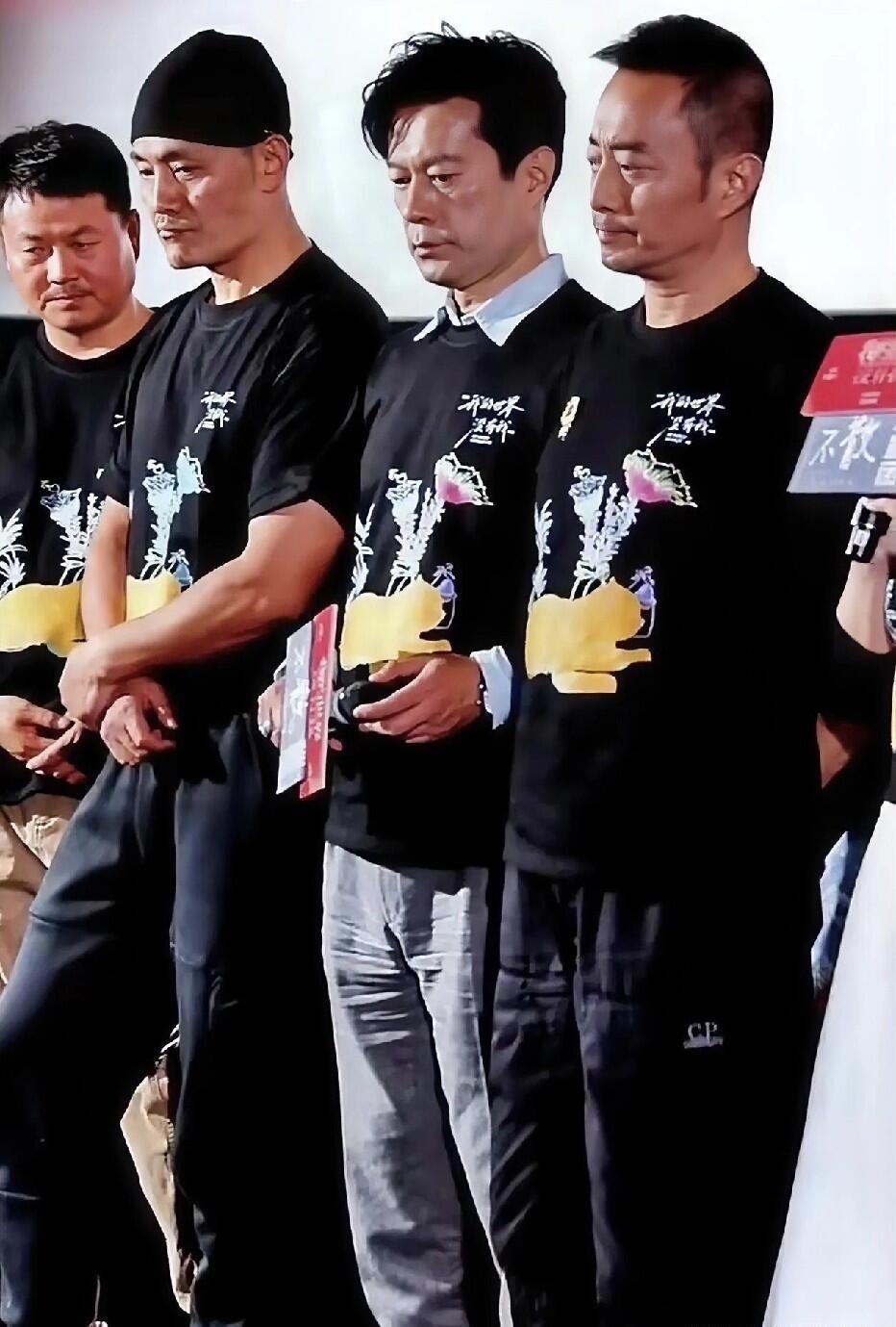 这四位明星的同框里,张涵予的颜值最普通,但他的演技在几个人里面算最好的一个。中间的是男演员谭凯,在很多电视剧里能看见他。 那还有个戴着帽子的男人是谁,他的身材好好哦,身形高挑迷人。
