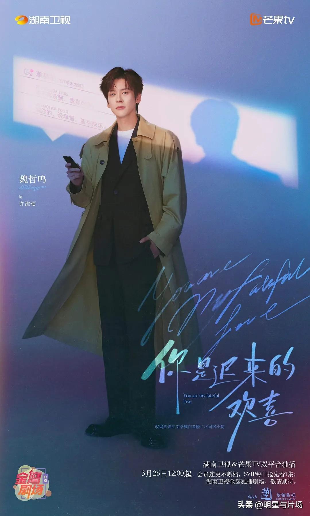 《你是迟来的欢喜》定档3月26日,魏哲鸣、郑合惠子领衔主演甜蜜爱情剧 《你是迟来的欢喜》就要在3月26日播出了。这部剧由刘栋执导,张亚和明书澄一起编剧。领衔主演的是魏哲鸣和郑合惠子,还有李俊贤、李歌洋、陈昊蓝、张沐兮主演,刘小北也来特邀出演。它在湖南卫视和芒果TV都能看到。 这个故事改编自顾了之的同名小说。阮喻(郑合惠子 饰)原本有一份稳定的工作,后来她放弃了。她用自己的情感经历写了一本小说,然后发到网上。 但是有网友说,这本小说抄袭了别人。所以阮喻决定要维权,帮她打官司的律师叫许淮颂(魏哲鸣 饰)。这个人正好是她高中时暗恋的人,也是她小说里男主的原型。 两个人因为案子又见面了。在一起处理事情的时候,他们又慢慢被对方吸引。这份感情藏了十年,因为回忆变得更浓,也因为现实的考验变得更坚定。 后来他们在事业上也有了新的挑战。两个人一起努力,互相打气。最后,他们等来了事业和爱情里“迟来的欢喜”。 小编的看法是,这部剧把暗恋和重逢放在一起,又有维权这条线,故事本身就挺抓人的。魏哲鸣和郑合惠子演男女主,看着也合适。喜欢看甜剧的朋友,应该会看得开心。