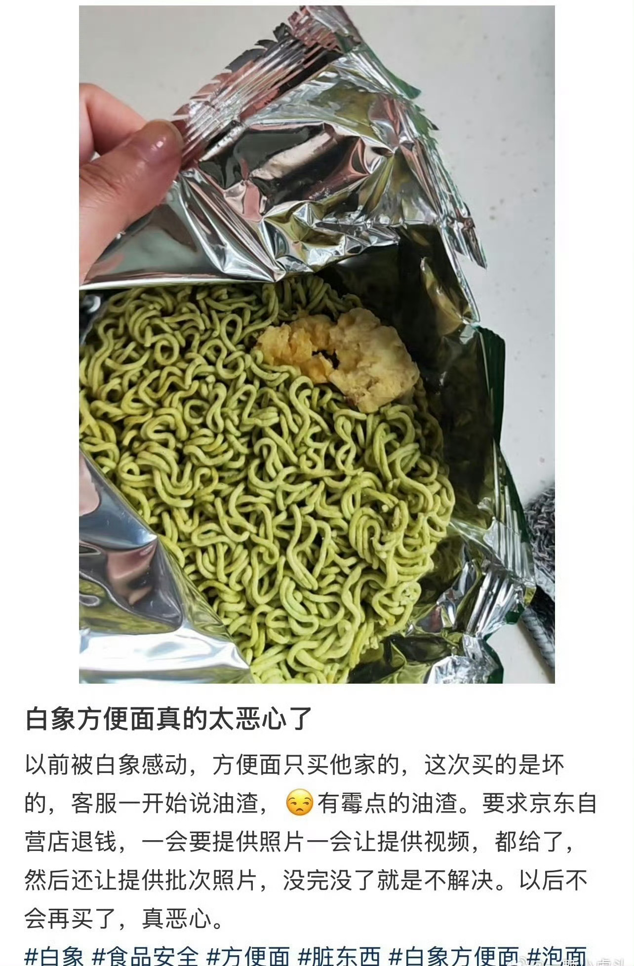 白象 土豆泥火鸡面 我的个天吓死我!消费者反映的问题也太多了!你要不 更名叫黑象!