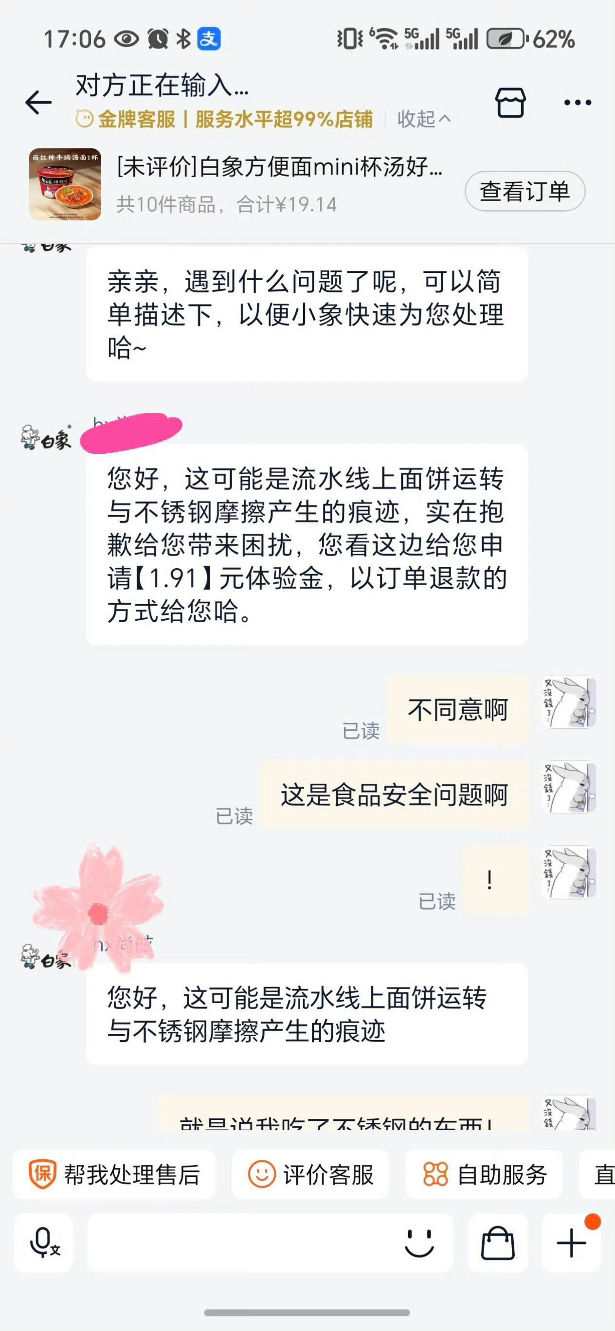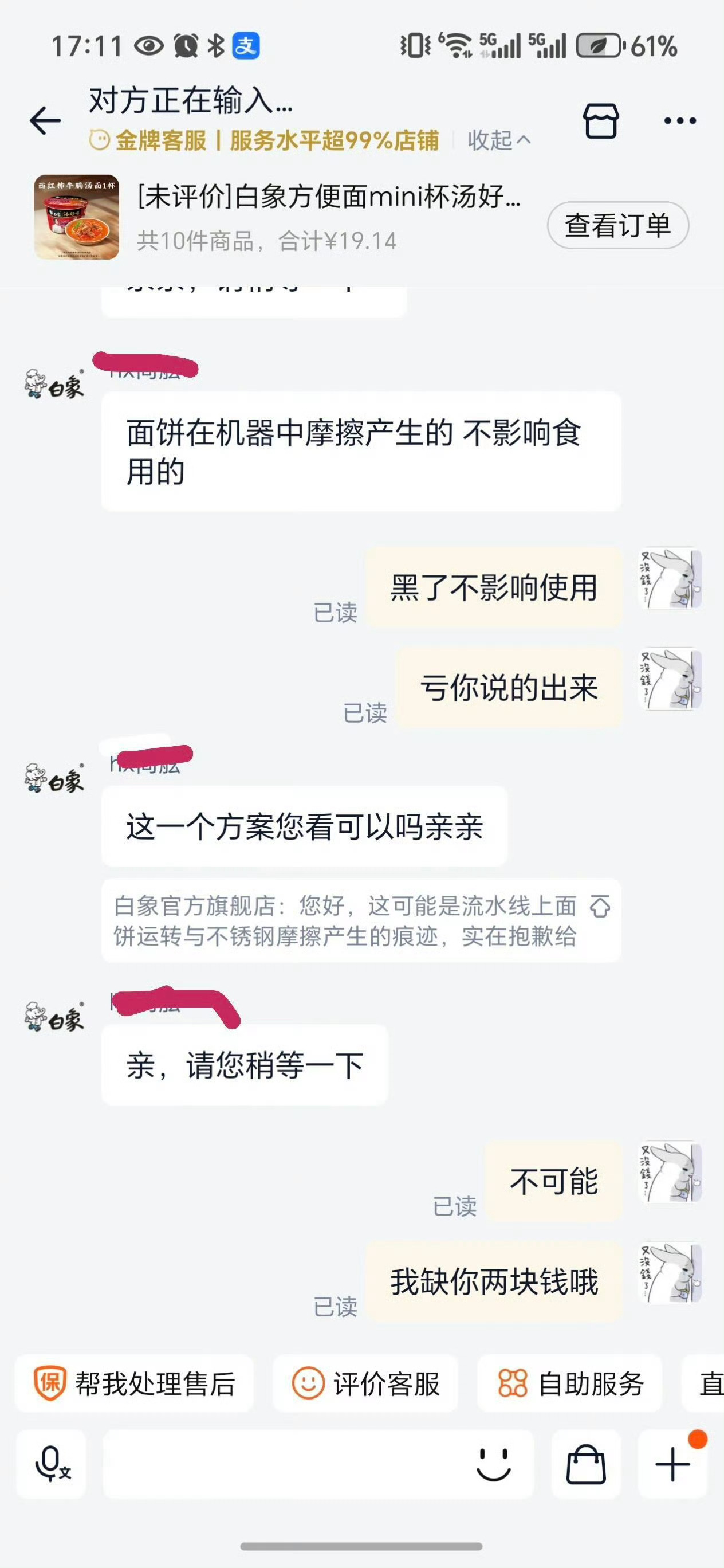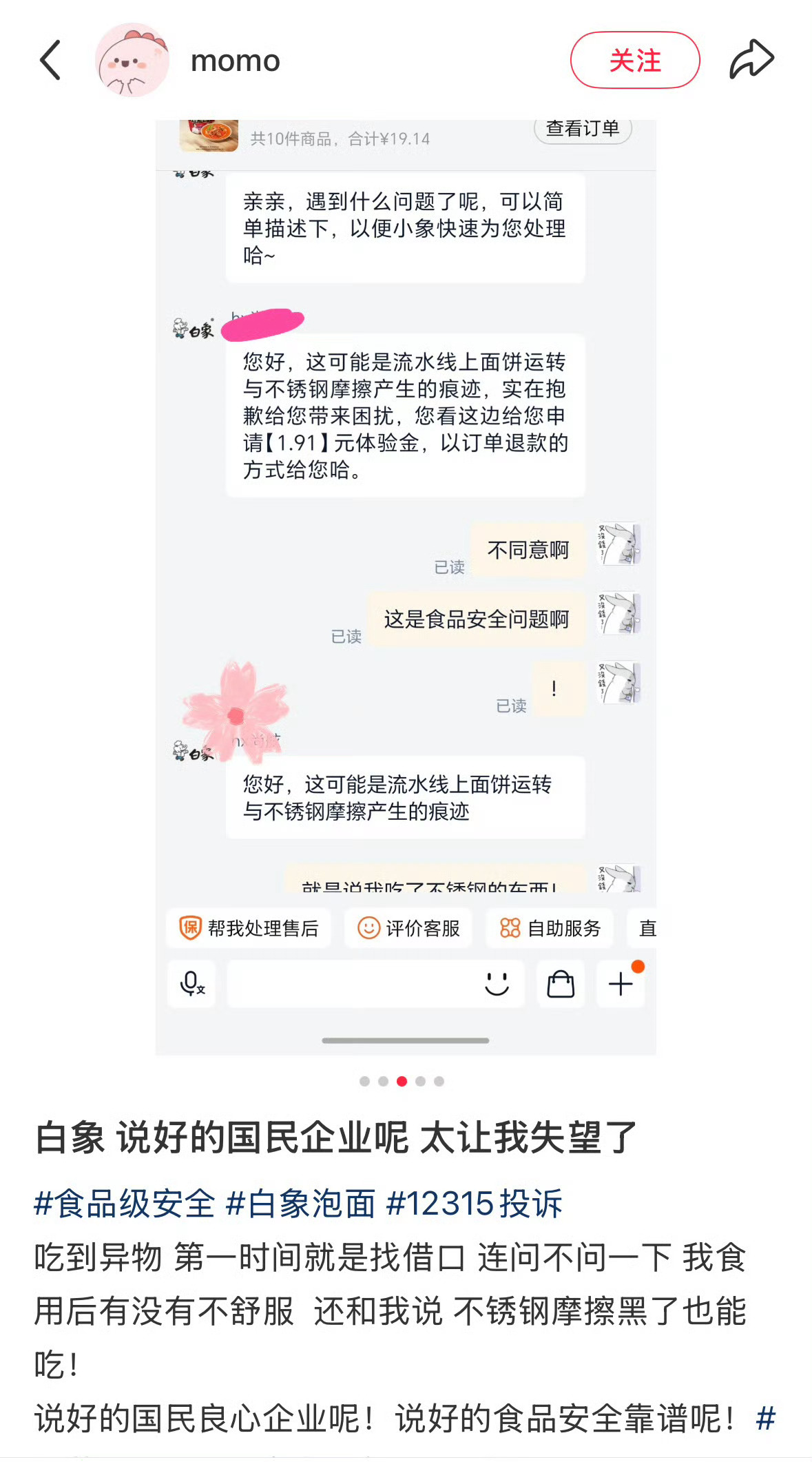 白象土豆泥火鸡面我的个天吓死我!消费者反映的问题也太多了!你要不更名叫黑象