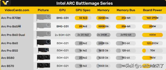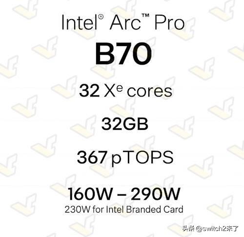 Intel全新的BGM-G31显卡此前已经多次传出相关消息,但确一直没有确切的发布日期,如今终于有了确切消息。 据VideoCardz爆料,Intel已向媒体发出新闻稿,确认将于3月25日发布Arc Pro B70与B65两款显卡,基于Battlemage BGM-G31 GPU,定位工作站市场。 规格方面,Arc Pro B70配备32个Xe2核心,搭载32GB ECC GDDR6显存,TGP功耗在160W至290W之间可调,Intel公版设计为230W。 而Arc Pro B65同样搭载32GB ECC显存,配备20个Xe2核心,功耗设定为200W,与B60保持一致。 此外,除了官方的限量版设计外,合作伙伴也将推出相应的非公版型号,为企业级买家提供更多样的选择。