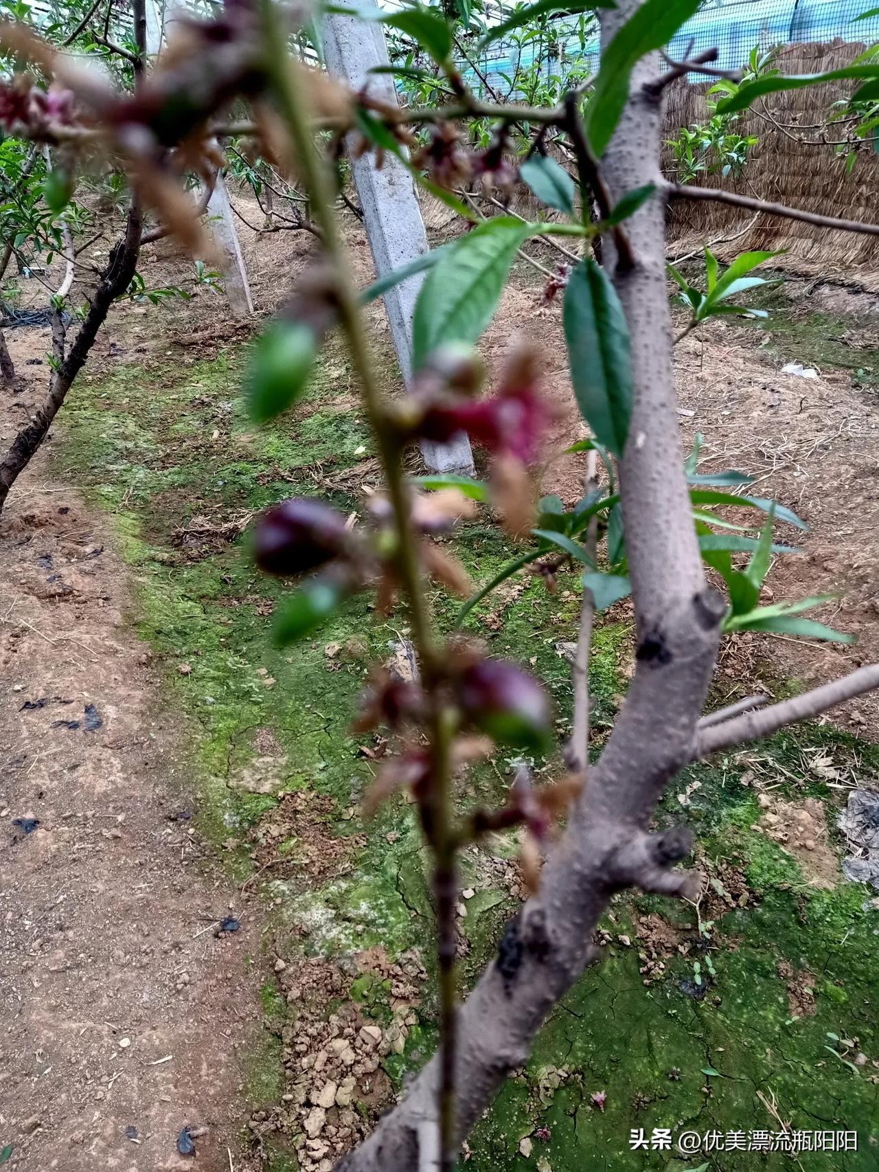 记录我的2026今天去大棚里转一转,发现油桃座果不是很理想,有的树座的少,有的树