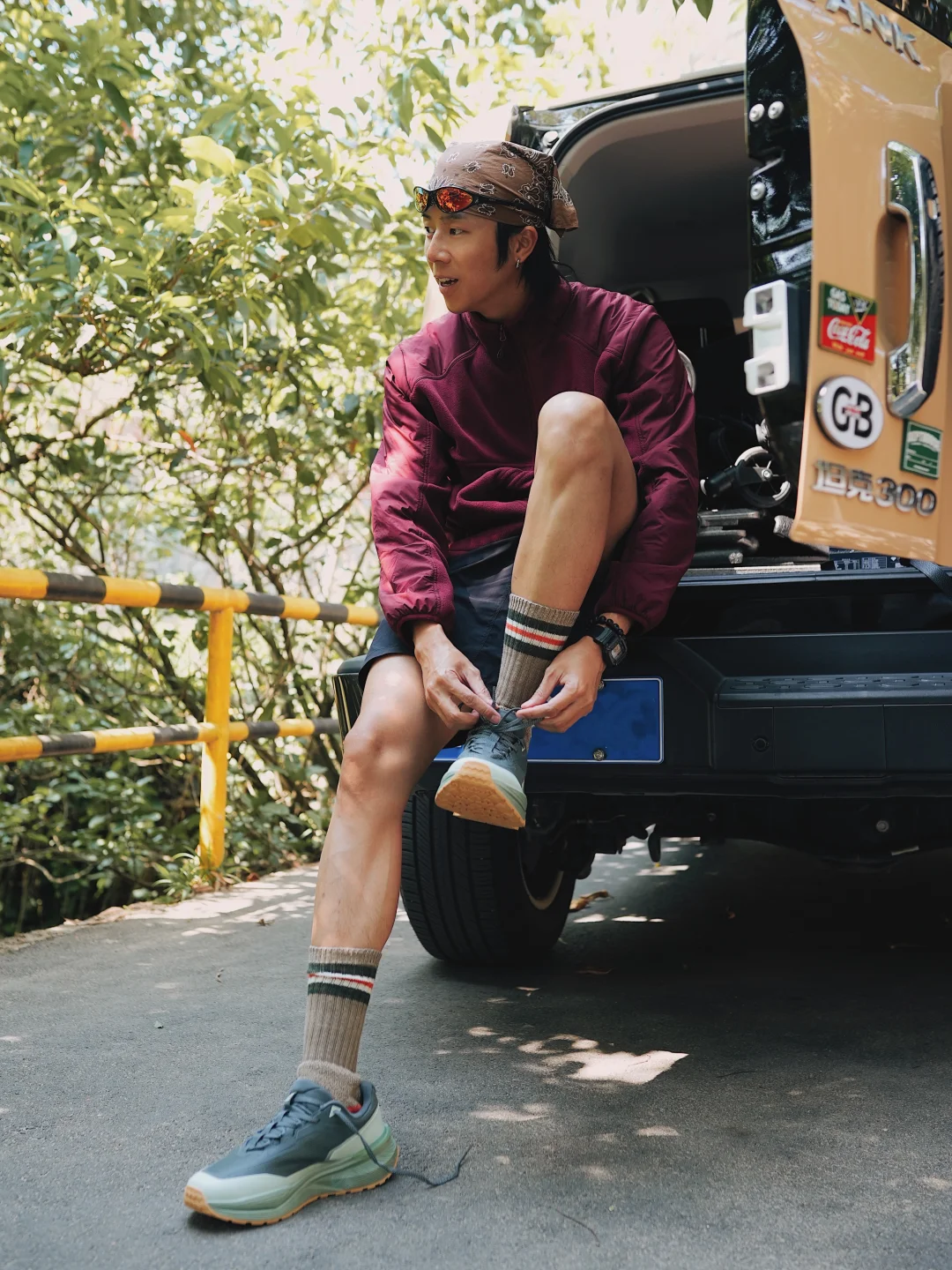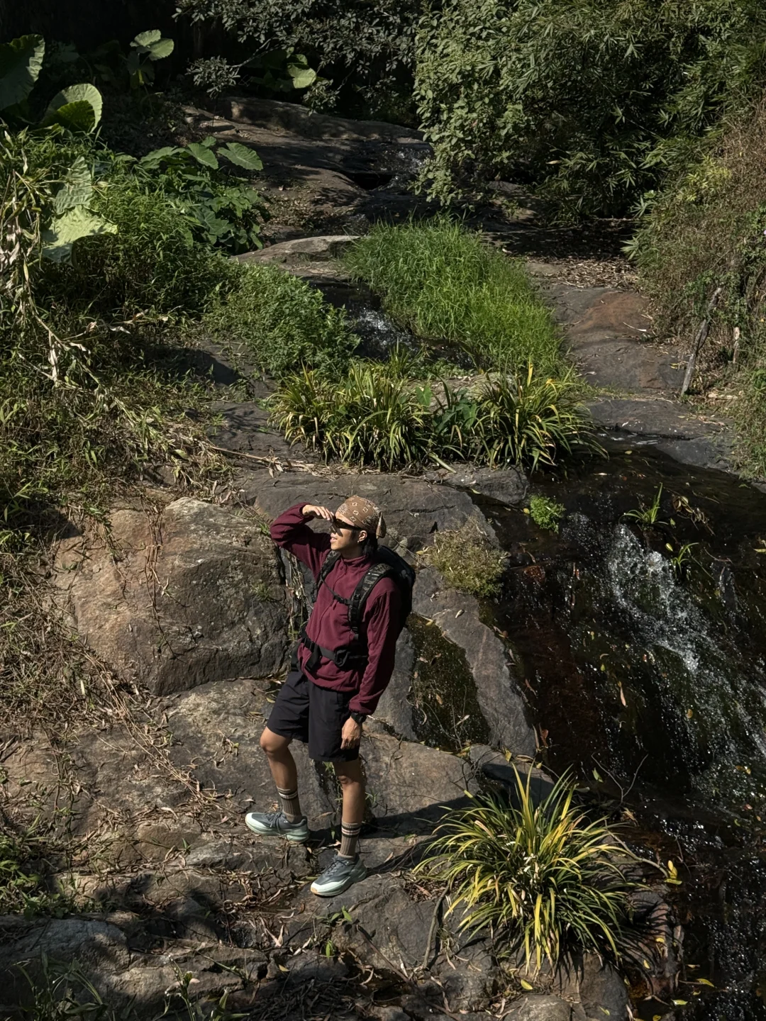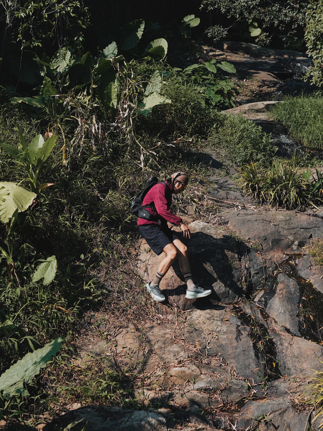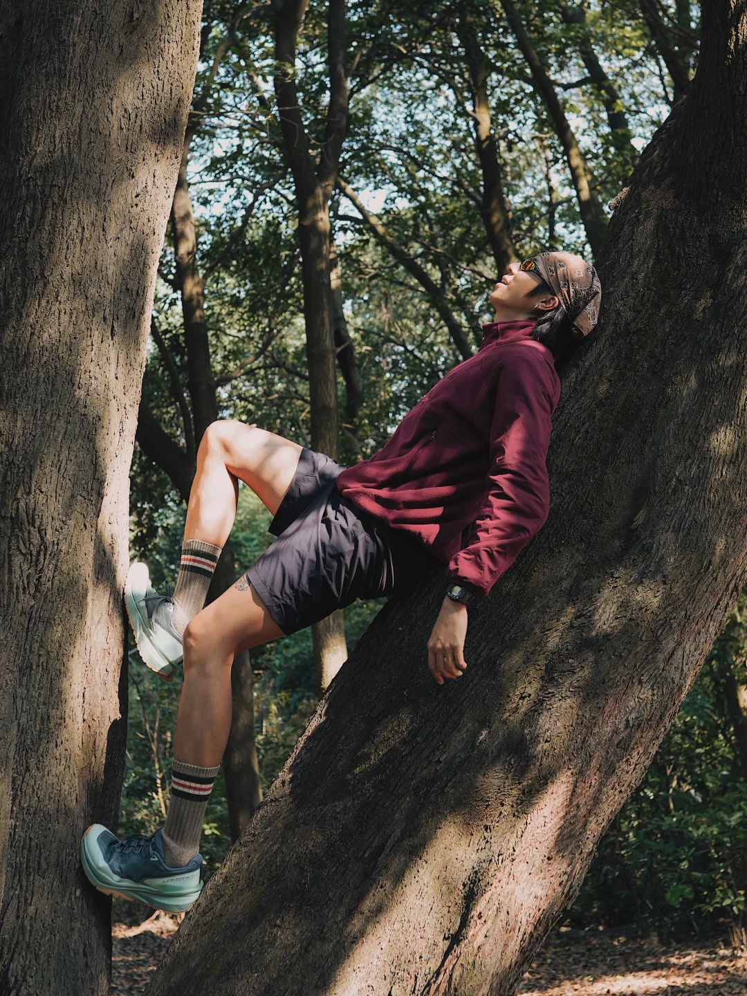 今天又来爬山啦⛰️ 这是我很喜欢的一条徒步线路 在黄埔的岭头大环线 其实在还没进入环线的山路上就已经很好看 在小溪边拍照也是非常帅的 进入岭头大环线后, 有一条是铺好的石板路照顾新手 也有“很野”的泥土路挑战😎 非常nice! 我今天穿的是361度的户外开襟卫衣和户外鞋 红色的上衣在户外就非常出片啦! 再加上头巾的点缀!户外松弛感拿捏! 搭配这双穿着舒适的户外鞋 暴走8km也不会累