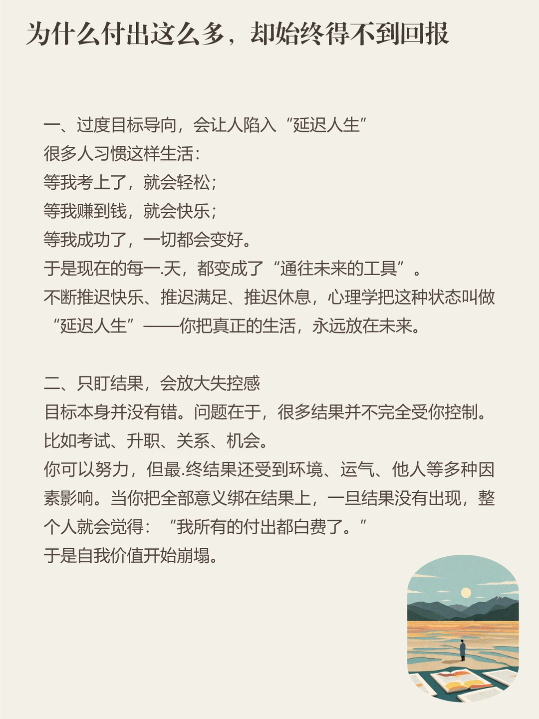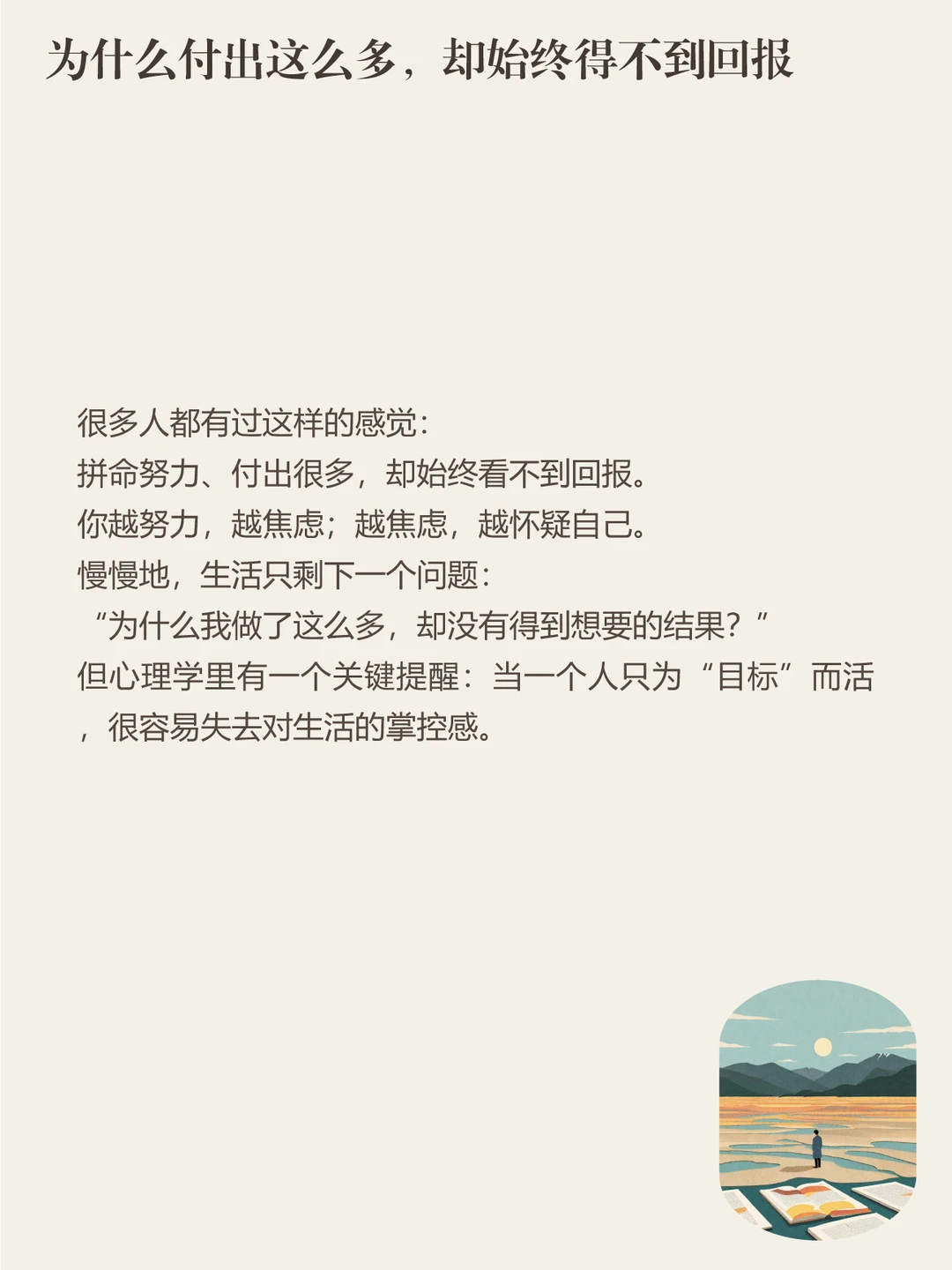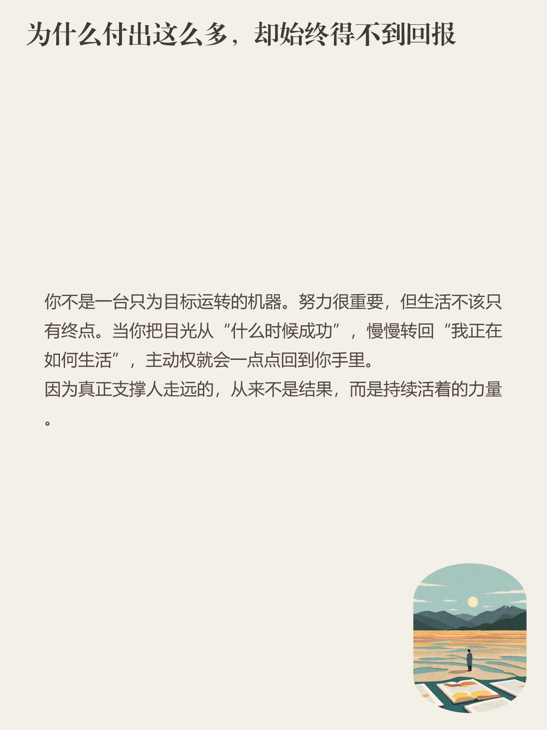 你不是一台只为目标运转的机器。努力很重要,但生活不该只有终点。当你把目光从“什么时候成功”,慢慢转回“我正在如何生活”,主动权就会一点点回到你手里。