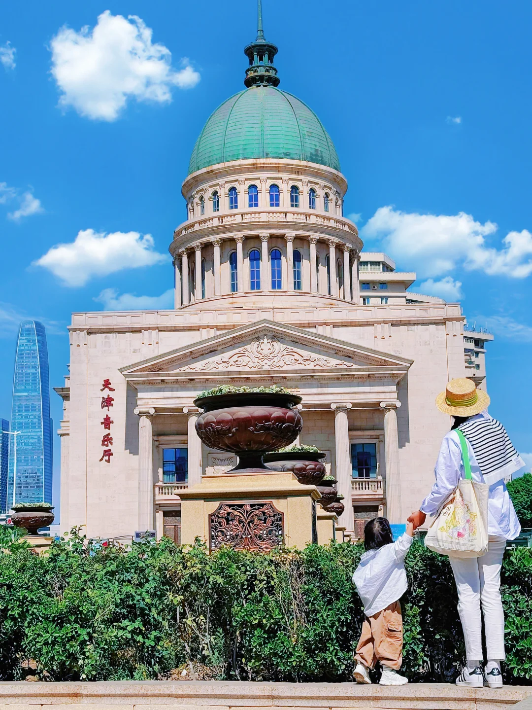 📍天津音乐厅:巨大的罗马柱廊、精致的浮雕、绿色的穹顶,时间富裕可以进去听一场音乐会