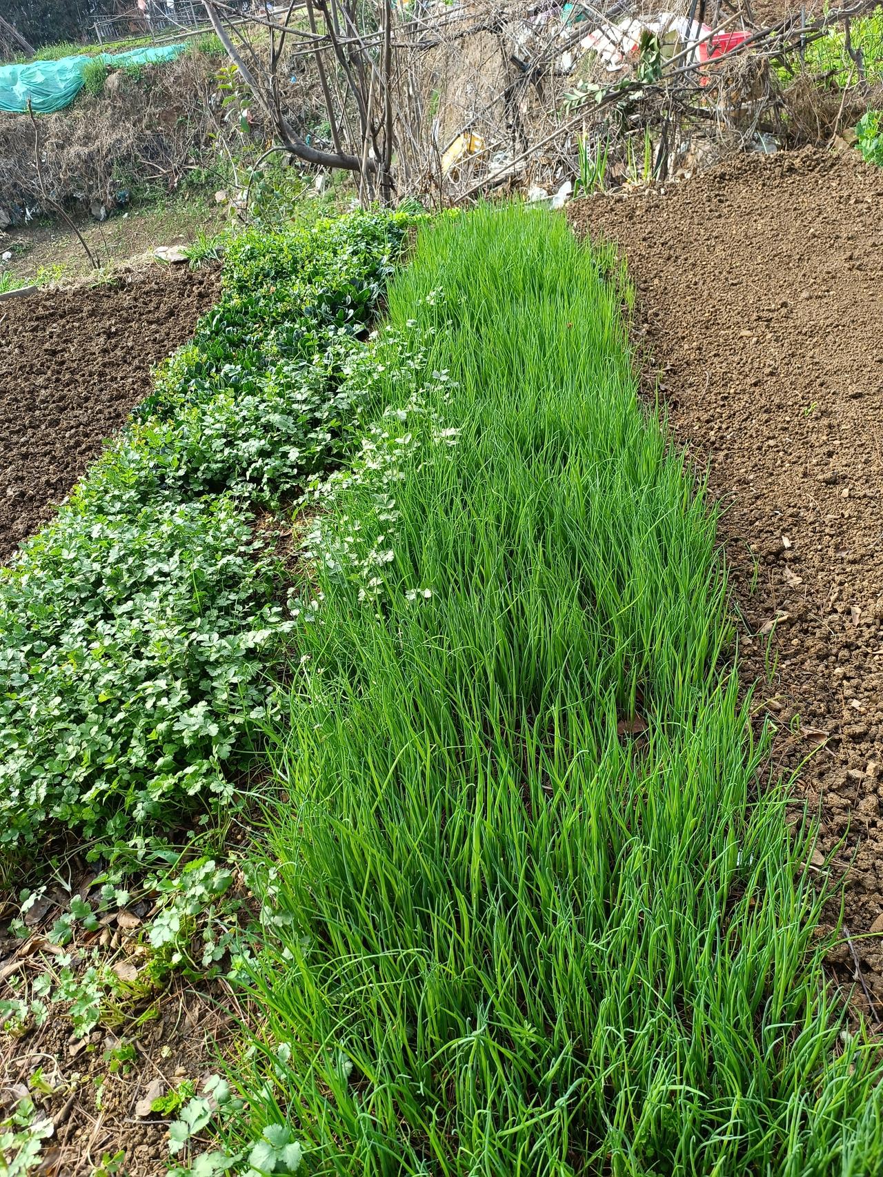 种的是菜,养的是心 走进我家菜园,真的不想走了,这菜长的太漂亮了,一畦小葱绿油油,挨挨挤挤立成一大片,仿佛给大地铺了块毛茸茸的绿绒毯。 韭菜长的真壮,茎秆粗壮,叶片宽厚,油光水滑,一看就好吃。 前两天栽了四十棵西红柿,今天又栽了三十棵包菜,栽的西红柿苗全部成活了,心里特别高兴。 春天最喜欢种菜,天气不热不冷,没有蚊虫咬,心情格外愉悦,还能治愈不开心。 朋友们,要想心情好,走到菜园里,看看这美丽的园子,再不好的心情,都能开心快乐!