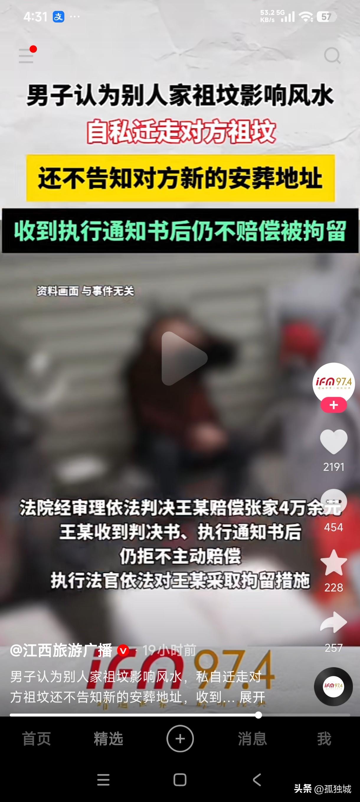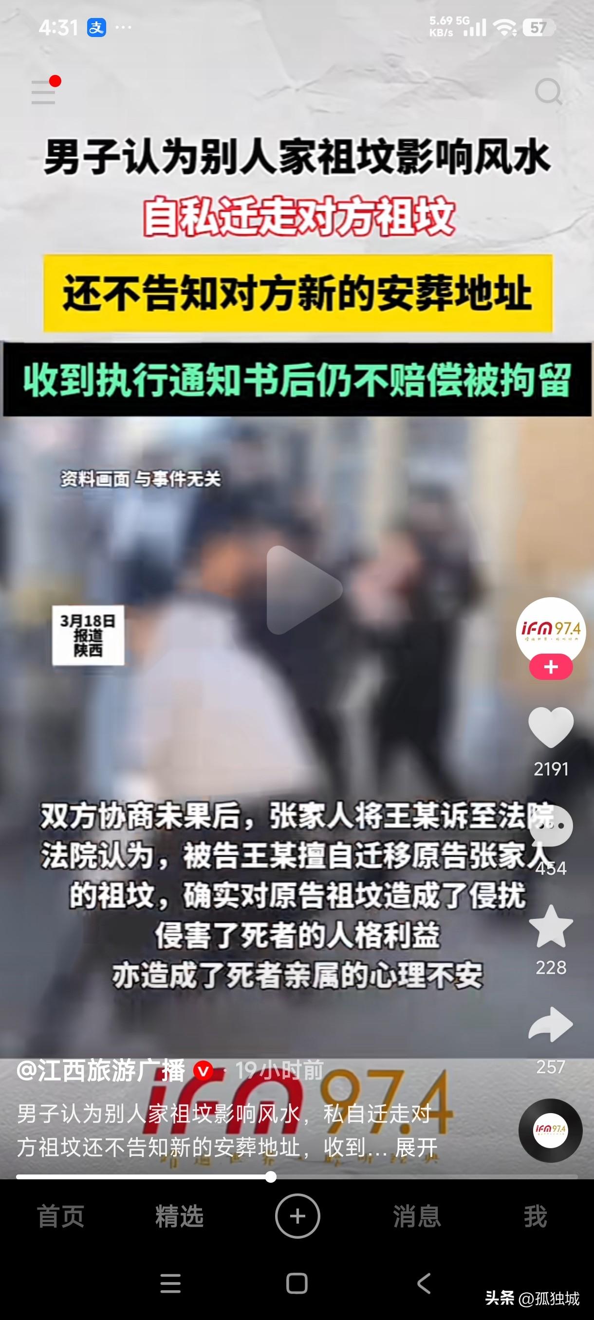 陕西一男子认为别人家祖坟影响自家风水,于是私自迁走对方祖坟,还不告知对方新的安葬地址,这种做法是不是太欺负人了? 这种做法搁谁身上能心里舒服,这不是把别人祖宗的尊严脸面踩在脚下摩擦吗?这种人恨不得给千刀万剐了都不解气,居然觉得别人家的祖坟影响自家的风水,私自把别人家祖坟迁走后还不给对方说新的安葬地址,这种欺人太甚的做法简直太过分了,这不是故意没事没事找揍吗? 对方起诉这货侵扰了死者的人格利益,对死者家属心理造成了不安,法院判决他赔偿死者家属4万多,这货收到判决书后仍然拒绝赔偿,法官不得已对他采取拘留措施,如此顽固不化缺德的人,就应该用自己的办法来解决问题,把他家祖宗挖出来丢垃圾堆里让他心里也尝试一下这滋味好受不?