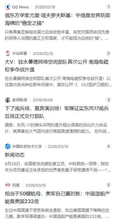 俄罗斯专家:“中国综合国力太强大了,美国始终不敢动手!”光是在军事层面,中国就有三个无限,让美国始终不敢动手:第一个无限:那就是体系无限。第二个无限:那就是科技无限。第三个无限:那就是生产力无限。 麻烦看官老爷们右上角点击一下“关注”,既方便您进行讨论和分享,又能给您带来不一样的参与感,感谢您的支持! 最近国际上有些声音挺有意思,俄罗斯有位东方学家尤里·塔夫罗夫斯基前些日子发了篇文章,里头提到个观点,说现在世界这么乱,中俄就像稳住局势的两个“锚” 。这说法挺形象,但也引出另一个话题:为啥美国在全球到处“动手”,唯独在咱们这儿,始终保持着那根紧绷的弦?说白了,不是不想,是不敢。这种不敢,不是胆小,而是面对“三个无限”时,那种无从下手的无奈。 第一个“无限”,是那种让你看不见、摸不着,但又无处不在的体系。现在的较量早就不光是军舰对军舰、飞机对飞机那么简单了。就拿南海来说,水面下有水下监听网盯着,天上有卫星二十四小时看着,空中有反隐身雷达扫着,这已经是公开的“明牌”。但真正让对手感到扎手的,是那张无形的网。今年年初官方披露的一个细节很有意思,在南沙永暑礁上,成建制地部署了网络空间部队 。这意味着啥?意味着咱们的防御体系从“陆海空天”直接升级到了“陆海空天电网”。这支队伍干的事儿,就是实时保护咱们岛礁上的指挥系统、预警雷达不被渗透和干扰,相当于在最前沿构建了一道“数字防火墙” 。以前大家都盯着海面上的岛礁,现在对手发现,在那片电磁空间里,他们也闯不进来了。这种体系化的协同,让任何想搞小动作的企图都变得无隙可乘。 第二个“无限”,是那种让对手引以为傲的技术优势瞬间过时的科技突破。记得2019年国庆阅兵,东风-17第一次公开亮相时,外媒那镜头恨不得贴到导弹轮子上拍 。为啥这么紧张?因为它是全球第一款正式服役的乘波体高超音速导弹 。以前的弹道导弹,飞的是抛物线,雷达能算路径;东风-17不一样,它在大气层边缘打水漂,末端还能以10马赫的速度蛇皮走位。现有的反导系统还没反应过来,它就已经到头顶了。这就好比大家都在练拳击,你突然掏出了“无影脚”,套路完全变了。还有更前沿的量子通信,“京沪干线”早就开通了,两千多公里的光纤,用的是一套物理原理决定的“绝对安全” 。这玩意儿一旦用在军事指挥链路上,对手就算有再强的算力,也破解不了,因为只要一偷看,信息本身就会“坍塌” 。这种从源头上掐断窃听可能性的能力,才是真正的降维打击。 第三个“无限”,说出来美国人可能最扎心,那就是生产力。这不是咱们自夸,是美国海军情报局自己算的账。根据最新的数据,咱们的造船产能是美国的232倍 。什么叫232倍?就是那边修一艘航母得排队等五六年坞位,这边干船坞多得能同时开造几十艘大舰。美国海军部长前段时间公开抱怨,说他们全国能造航母的就一个船厂,三个坞位,而咱们这边能放航母的干船坞有五十多个 。平时这些产能造商船、造液化天然气船,一旦有需要,那就是源源不断的战斗力。这种工业底子带来的“无限”,不是说你真要造多少艘船,而是你有这个选项,你有这个底气。对手得掂量掂量,跟你拼消耗,他拼得起吗? 说白了,经过这三十多年的积累,咱们走的路很实在。从当年被各种技术封锁,逼着搞自主创新,到如今在《瓦森纳安排》这种西方技术围墙里硬是杀出一条血路,实现了从跟跑到领跑的跨越 。这种跨越不是靠嘴说,是靠东风-17的弹头、靠永暑礁上的机房、靠船台上飞溅的焊花,一锤子一锤子敲出来的。当体系、科技、生产力这三样叠在一起,就形成了一种让任何对手都不得不冷静下来的“综合国力”。美国不是不想动手,而是在这“三个无限”面前,他发现所有的战争推演,结局都写着两个大字:没戏。