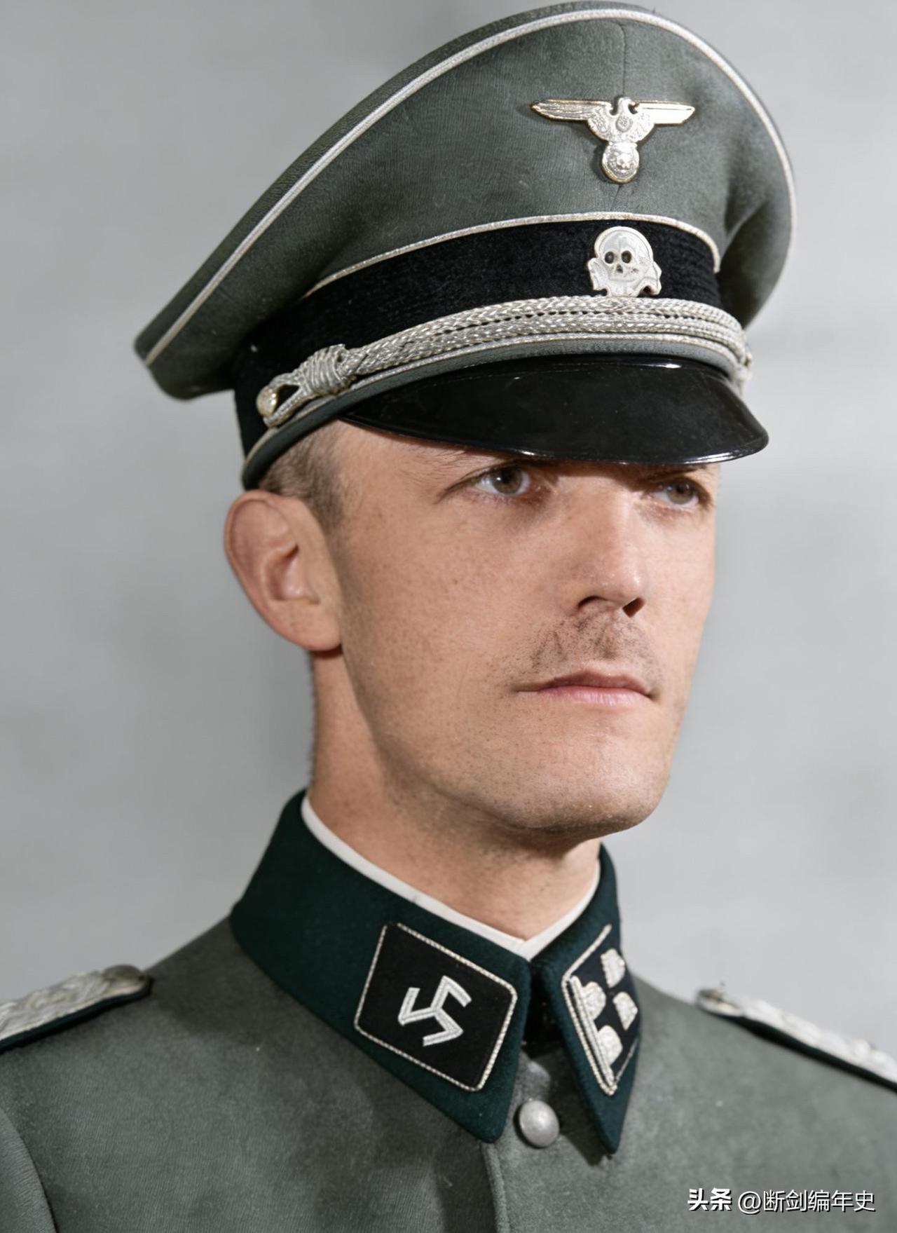 一名武装党卫军第27“兰格马克”志愿掷弹兵师的一级突击队大队长(中校)。 武装党卫军第27“兰格马克”志愿掷弹兵师(27. SS-Freiwilligen-Grenadier-Division „Langemarck“)是二战后期由比利时佛兰德志愿者组成的一支外籍部队,其名称源于1914年11月的一战战役——朗格马克(Langemarck)。它的前身可追溯至1941年组建的“佛兰德斯”志愿军团(SS-Freiwilligen-Legion „Flandern“),该部队投入东线战场,参与了列宁格勒周边的战斗。1943年,该军团改编为“朗格马克”志愿突击旅(SS-Freiwilligen-Sturmbrigade „Langemarck“)。1944年夏季,该旅在爱沙尼亚的纳尔瓦战役中参与防御坦能堡防线,与其他欧洲外籍党卫军部队并肩作战,伤亡极其惨重。同年10月,残部撤回后方,被升级为师级建制,但实际兵力从未满编,全师仅约4000人。 1945年初,该师被调往波美拉尼亚和奥得河前线,在苏军攻势中几乎被全歼。2月初撤至梅克伦堡时,全师仅剩不足200人。1945年4月,残余的百余名官兵向英军投降。大部分佛兰德志愿者战后在比利时国内被以通敌罪起诉。 德国师 历史 历史老照片 二战老照片 二战