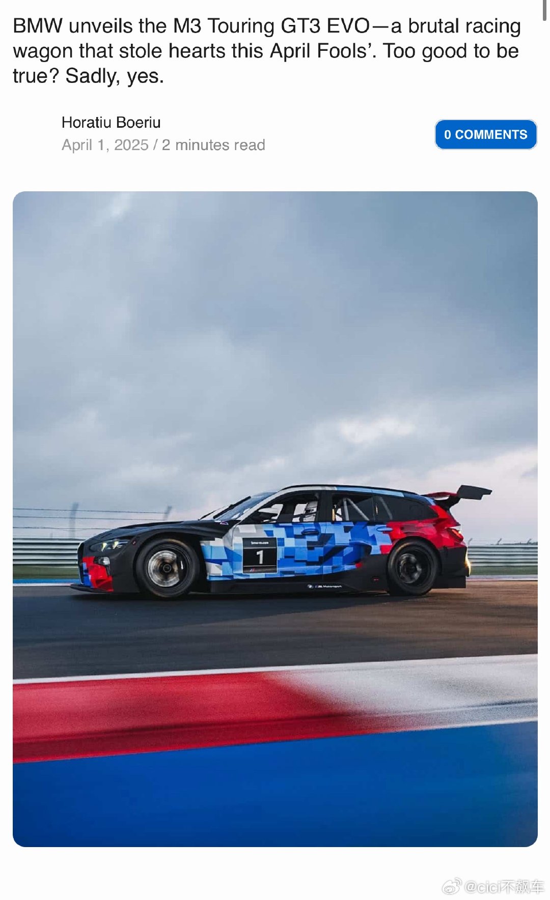 这台宝马M3旅行版GT3赛车好帅啊!25年的愚人节概念图,26年真的在纽博格林参加比赛了,这个态度更是帅啊所以车身涂装写着“YOU DREAMED IT, WE BUILT IT”,大大的respect🫡大v聊车赛车宝马m3旅行版