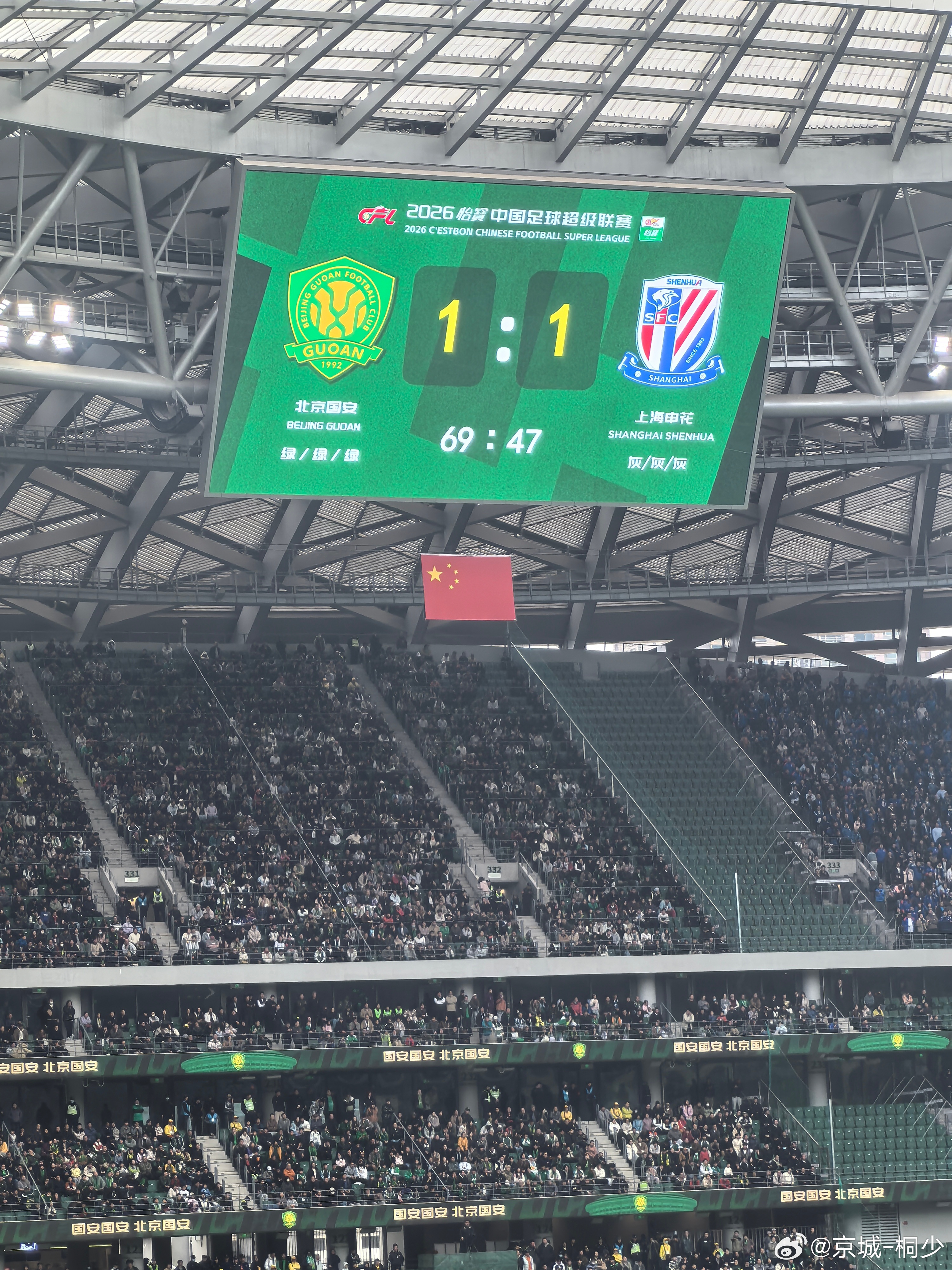 主场未胜,热血未凉!国安加油!👊👊👊💚比赛现场中超北京国安vs上海申花张