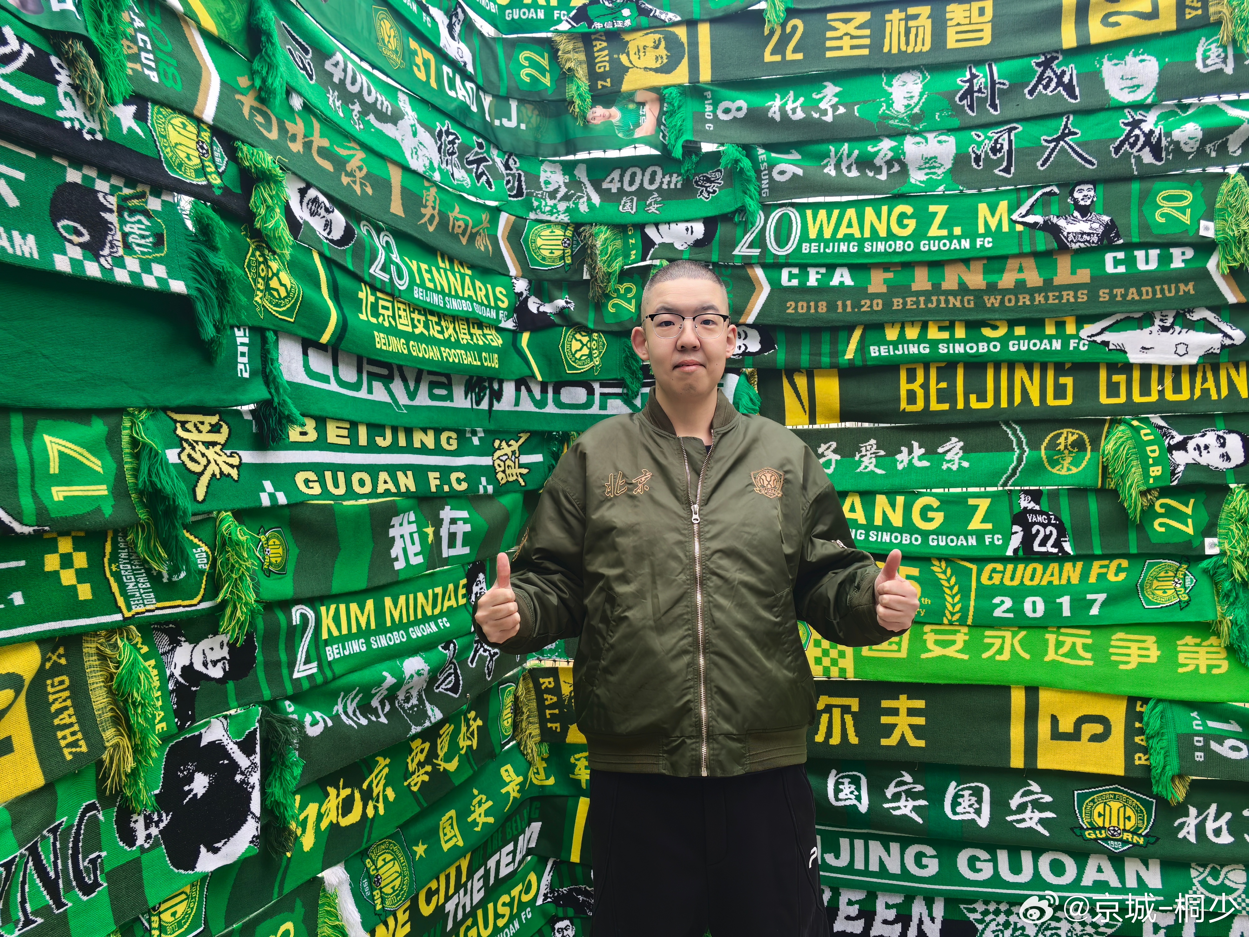 围巾墙!国安球衣合影!!😬👍💚足球的魅力北京国安合影同城热门 北京·北京工