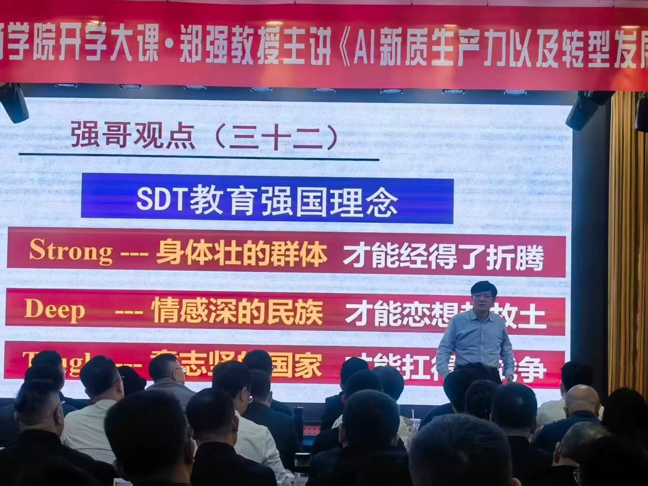 3月21日郑强教授来兰州讲Ai新质生产力了! 今天郑强教授莅临兰州新商界商学院,给兰州企业家讲授Ai新质生产力了。 郑教授以阳光般的激情,讲授了Ai在企业管理的重要性,强调了新质生产力是企业发展的永恒动力。 郑教授紧紧把握企业发展脉搏,语言幽默,妙语连珠,赢得听课企业家们的广泛好评。 强哥就是强,讲得非常棒,祝强哥在兰州开心顺利!