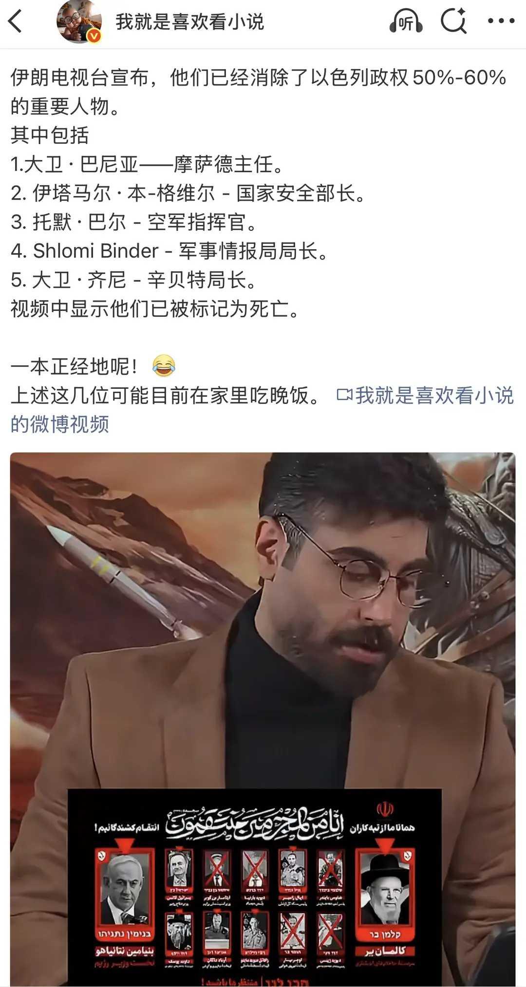 没看出来啊!伊朗电视台宣布,他们已经消除了以色列政权50%-60%的重要人物,