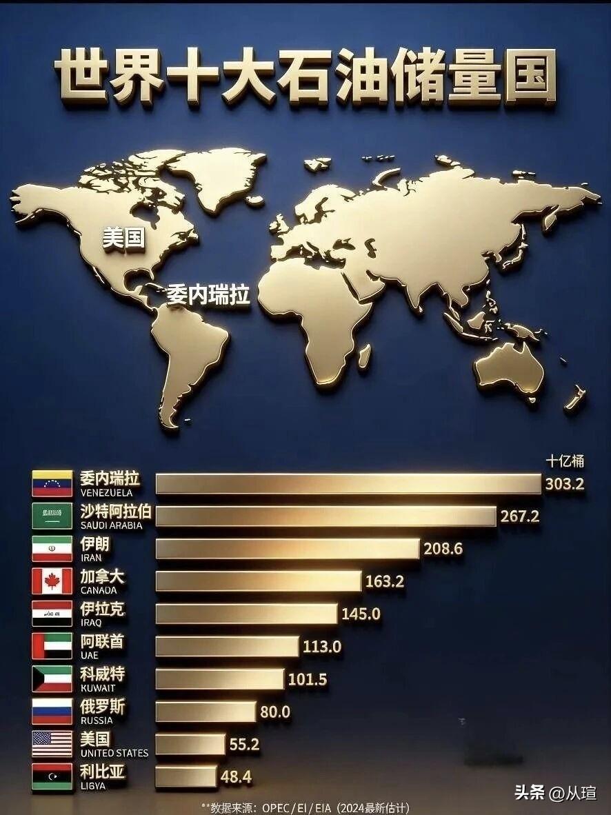 世界上的十大储油国和十大产油国石油中东全球石油命脉石油供应格局石油储量排