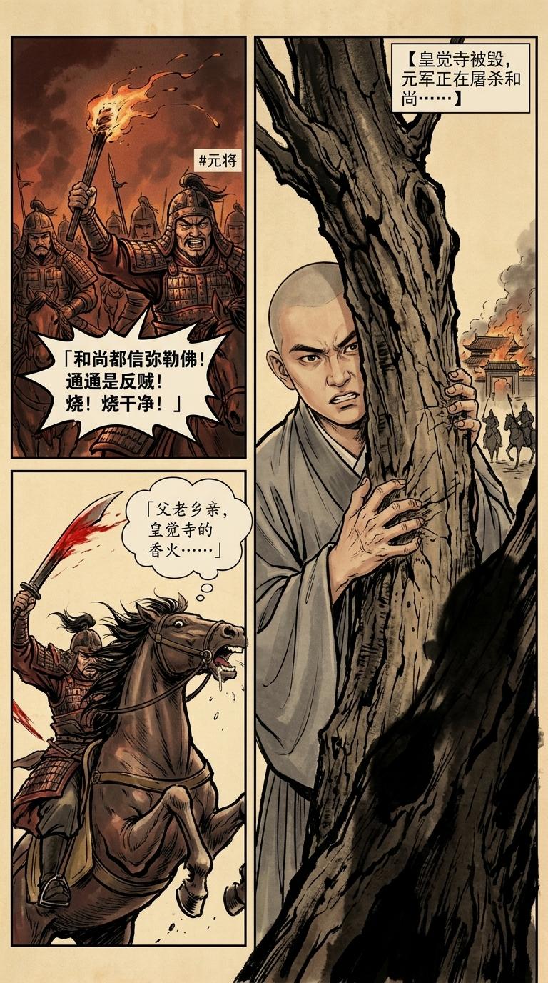 原创漫画《洪武:山河日月》系列(7): 十个人,一面木牌,一个叫朱重八的和尚。