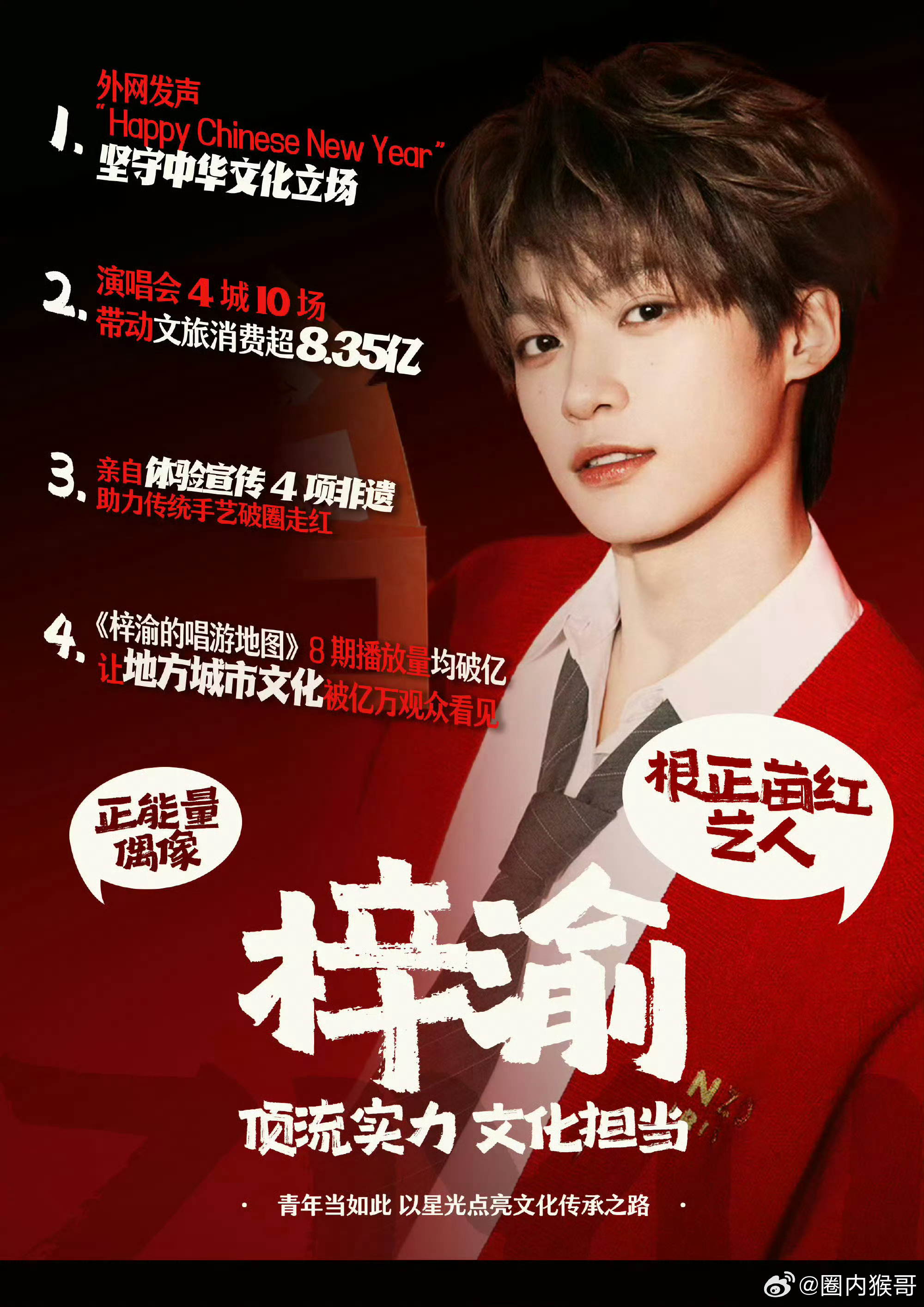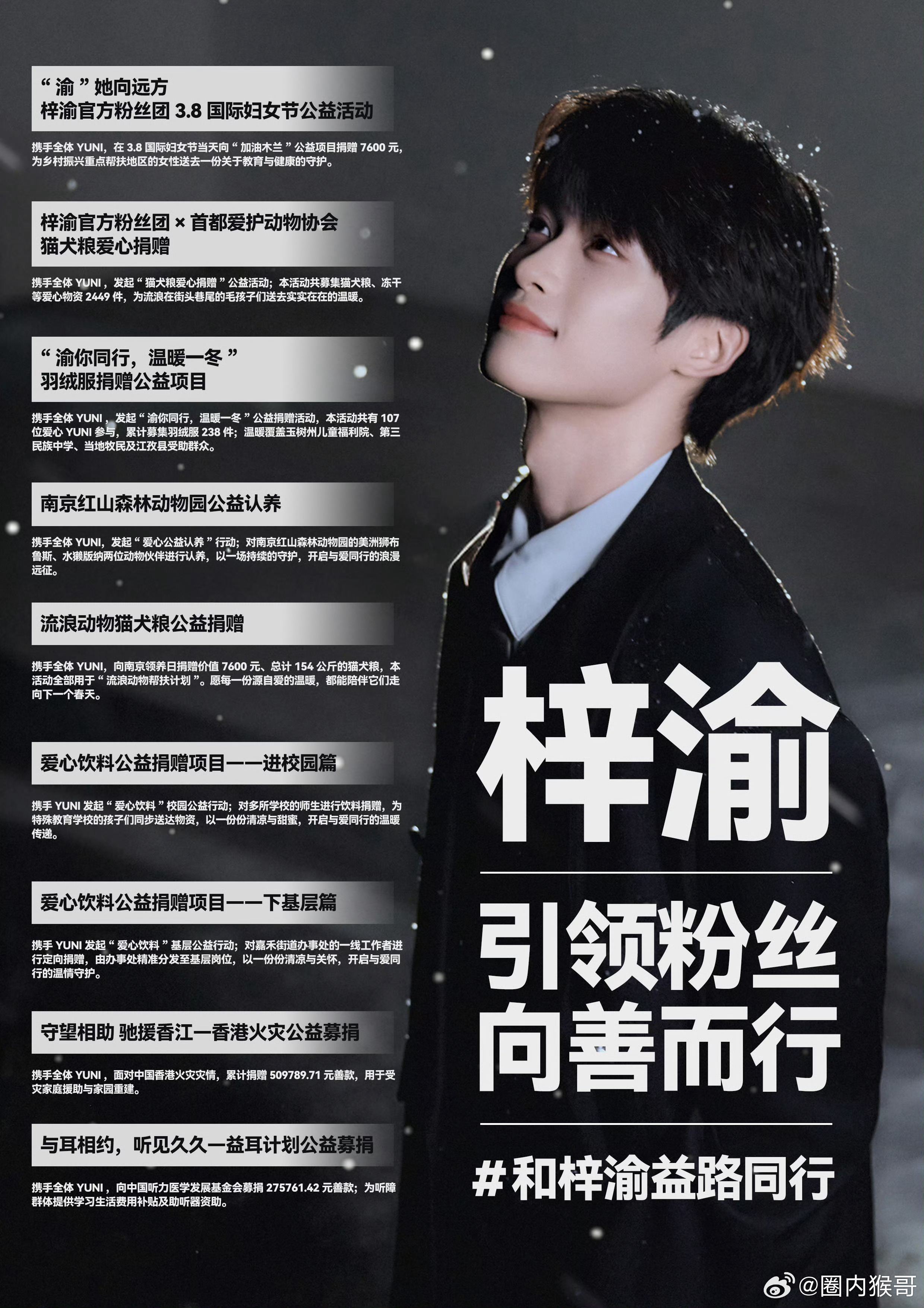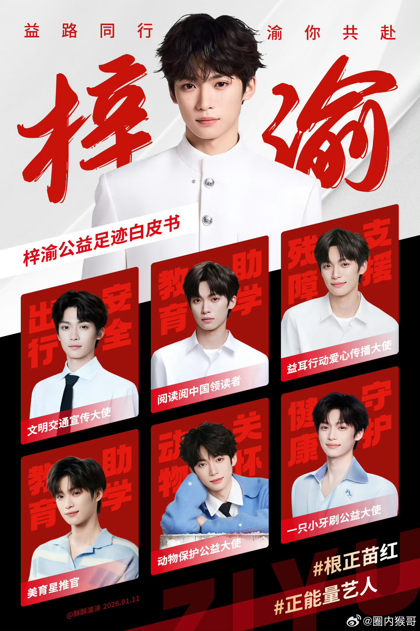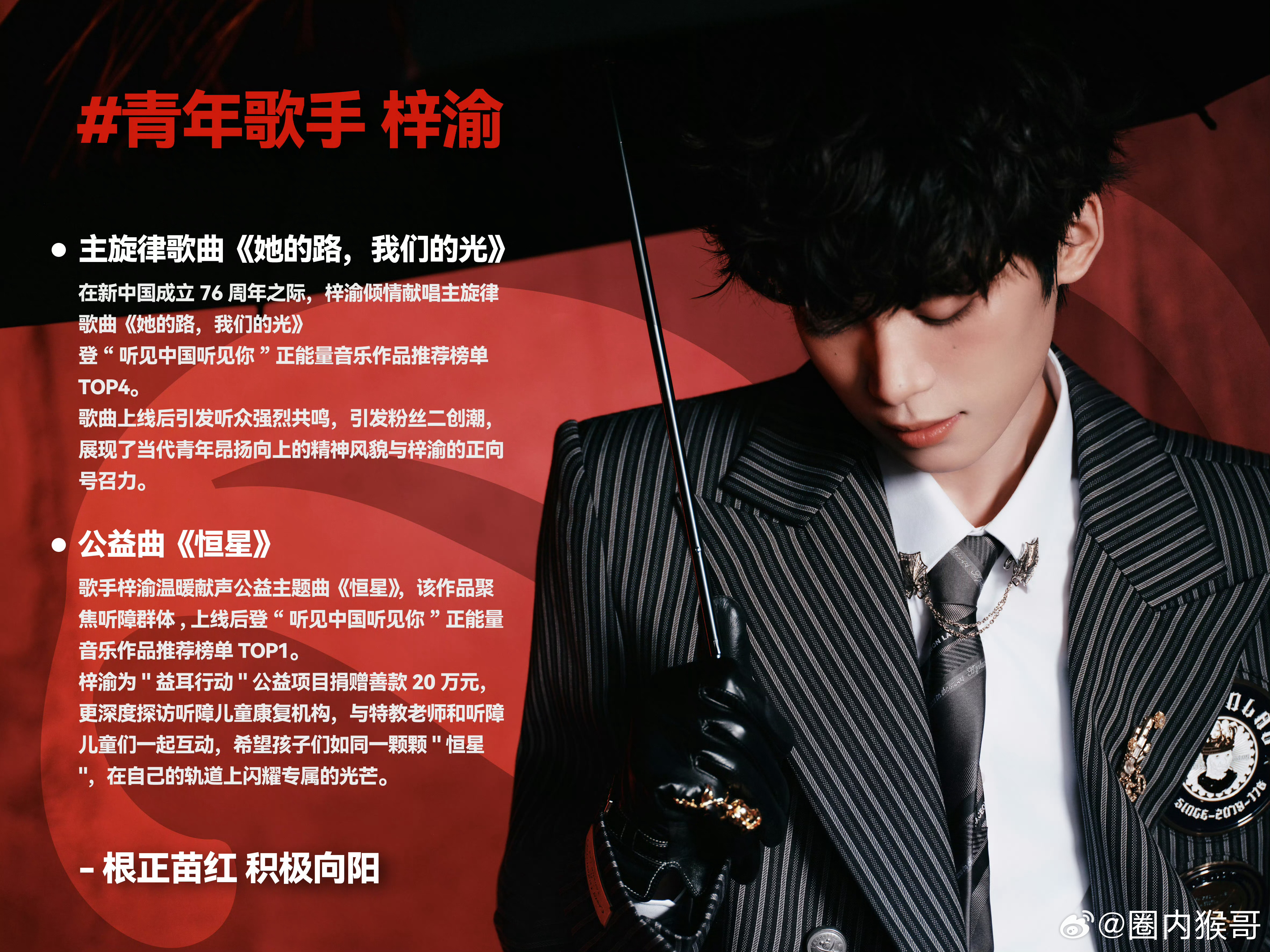 梓渝是第一个被粉丝家长谈话的明星吧这就是真正的优秀艺人啊,给粉丝以精神力量,带动粉丝积极做公益散发正能量,会带动粉丝一起进步!所以,期待一下青年艺人梓渝即将推出的个人首张专辑吧!梓渝