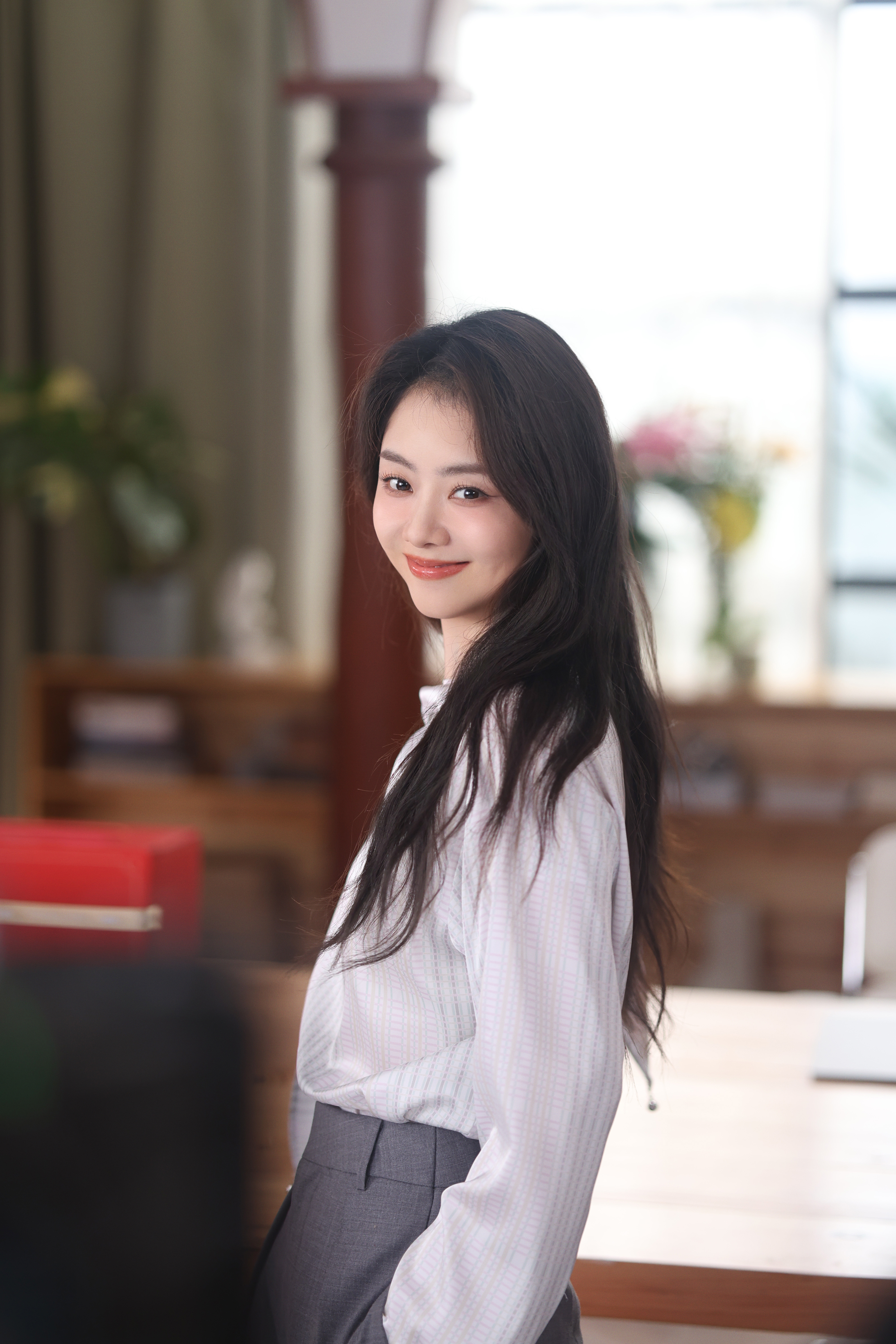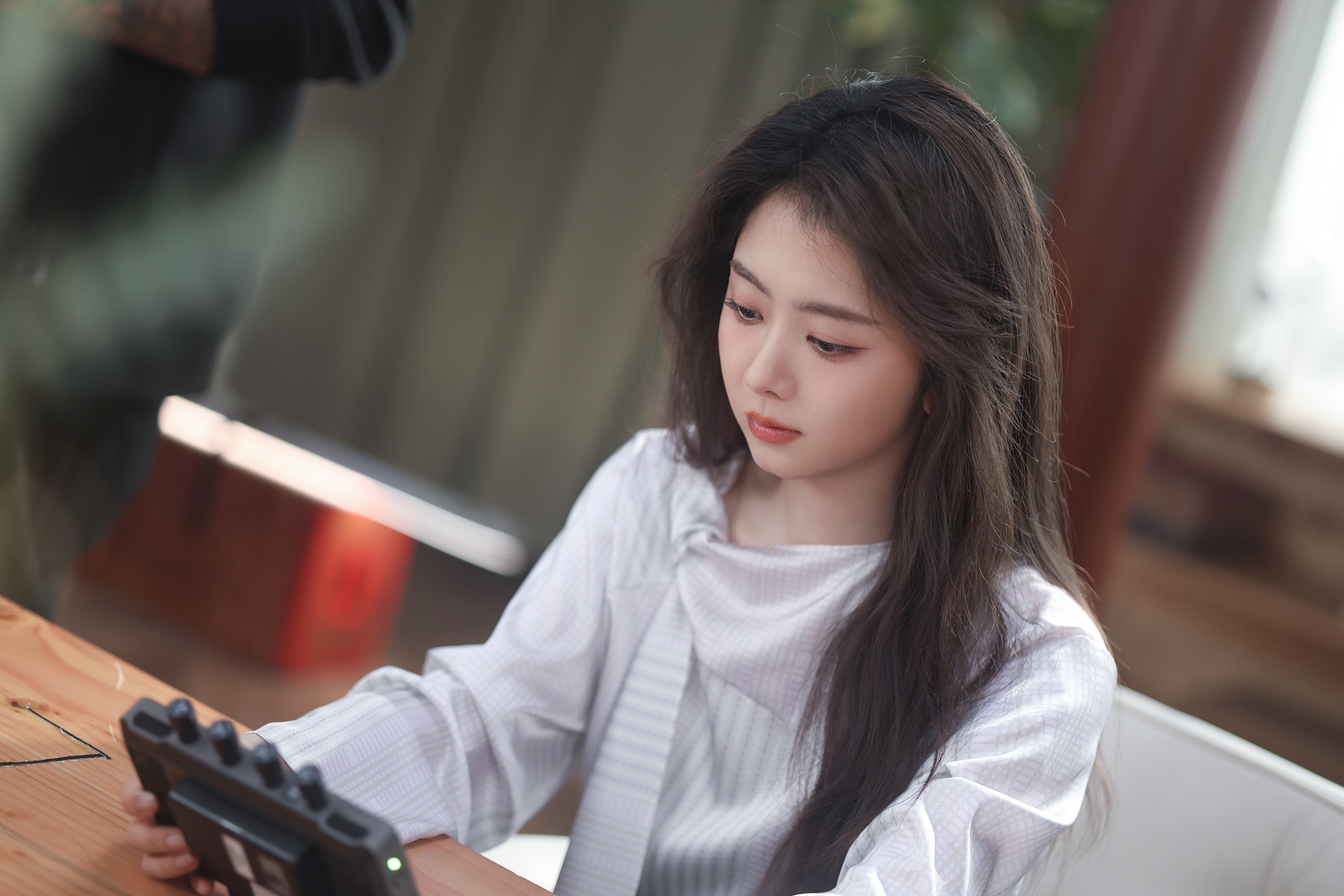 刘亦菲你要注意,背面的镜子给你反光了。