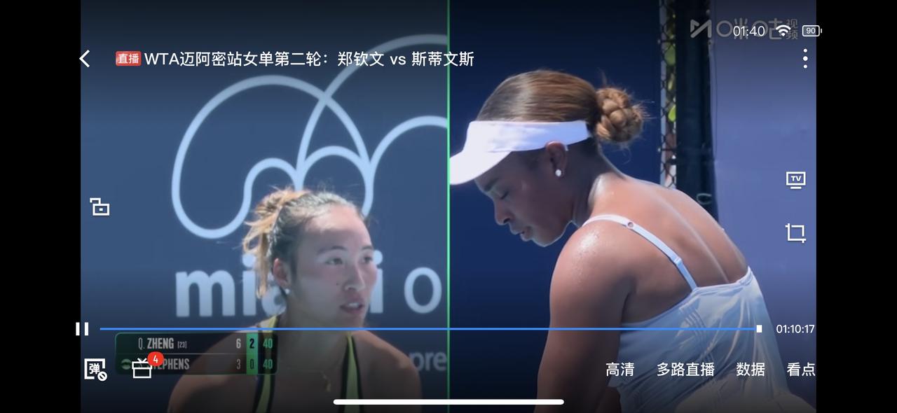 赢了✌️!郑钦文获得了胜利✌️!取得了WTA迈阿密站第二轮比赛的胜利! 在刚刚结束的WTA迈阿密站女单第二轮比赛中,中国选手郑钦文对阵持外卡的美国选手斯蒂芬斯,最终郑钦文以6比3、6比2,大比分2比0取得了胜利✌️! 恭喜郑钦文拿下了胜利✌️!打进了第三轮!