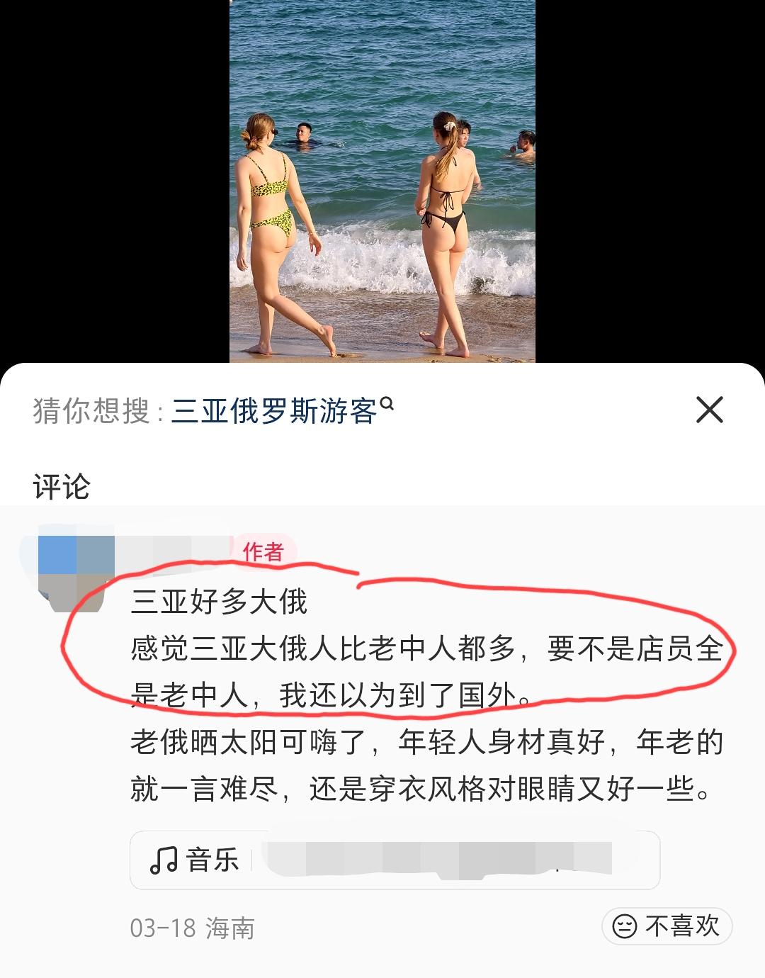 海南。网友发视频吐槽:感觉现在三亚海滩上俄罗斯人比我们国人还要多,要不是店员全是我们国人,还以为到了国外呢? 评论区网友的一句调侃或许说出了个中缘由:俄罗斯人最起码算大半个东北人。 如果要从地理上论,人家不就是整个欧洲乃至亚洲的大东北吗?在这个乍暖还寒的早春,有钱有闲的还不飞到南方来度假吗?而这方面,现在的三亚无疑是非常不错的选择!