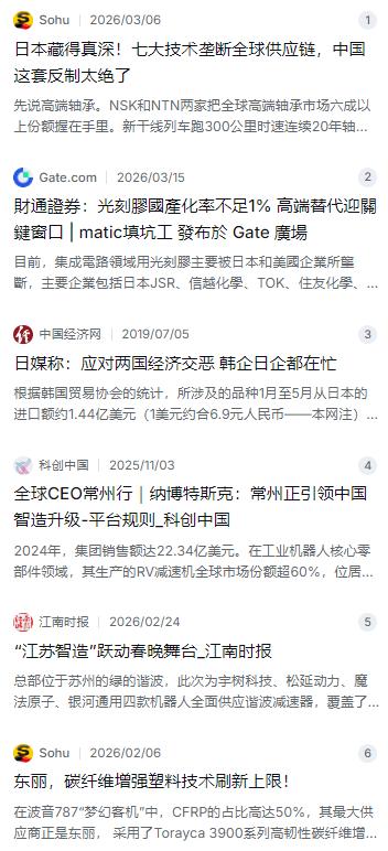 一位日本华人表示“高端轴承、精密仪器、传感器、机器人减速器、碳纤维、光刻胶以及五轴机床,这七大关键技术,中国落后于日本”,于是便有网友质问道,日本把这些技术,应用在了哪里呢? 麻烦看官老爷们右上角点击一下“关注”,既方便您进行讨论和分享,又能给您带来不一样的参与感,感谢您的支持! 最近有个帖子在网上挺火,一位在日本生活的华人列出了高端轴承、精密仪器、传感器、机器人减速器、碳纤维、光刻胶和五轴机床这七大关键技术,说咱们和日本还有差距。这话听着确实不那么舒服,但也有人反问了一句:日本把这些顶尖技术都用在哪儿了?这问题问到了点子上,咱们今天就来掰扯掰扯这事儿,看看这些“卡脖子”的技术到底藏在哪里,现在又是个什么局面。 先说个离咱们生活挺近但平时注意不到的东西——高端轴承。你坐高铁的时候,有没有想过车轮每分钟几万转,车厢还那么稳,靠的是啥?日本NSK和NTN这两家公司,基本把持了全球高端轴承市场的六成以上份额。新干线跑了这么多年,人家的轴承能做到300公里时速连续跑20年不用换,这份功底确实得认。咱们的高铁早期像CRH2车型,用的就是NTN的货,包括现在风电主轴轴承,国产化率也就三成左右,这玩意儿要是在高速运转中出点问题,那就是大事儿。 再来说说芯片制造里不可或缺的光刻胶。这是把电路图刻到硅片上的“颜料”,尤其是做7纳米以下先进制程芯片必须的ArF和EUV光刻胶,日本企业几乎是独步天下。信越化学、JSR、东京应化这三家,加起来拿捏了全球九成以上的高端市场。这事儿最让人印象深刻的是2019年的日韩贸易战,日本一卡脖子,限制对韩国出口光刻胶和氟化氢,直接把三星和SK海力士逼到了墙角,生产线差点停摆,库存撑不了三个月。那一幕,让全世界都看清了,谁手里握着半导体制造的“命根子”。 机器人这几年在国内火得不行,尤其是工厂里那些能搬重物、搞焊接的大家伙。但很多人不知道,这些机器人能精准地把焊枪点到指定位置,靠的是关节里的“小零件”——减速器。日本纳博特斯克公司,在机器人RV减速器这一块曾经强得没朋友,一度把持了全球60%的市场,在中重型机器人领域更是夸张到占了90%。不过,这两年情况正在起变化。咱们国产的绿的谐波、来福谐波这些企业追得非常猛,到了2024年,纳博特斯克的全球份额已经被咱们挤兑到40%左右,尤其是在人形机器人和协作机器人这些新赛道上,国产减速器越来越吃香。 还有天上飞的,比如波音787梦幻客机,这飞机机身一半以上用的都是碳纤维,比铝合金轻,强度还是钢的十倍。谁供货的?日本东丽。靠着东丽的碳纤维,波音787能省油20%以上,这也是日本材料技术的一个高光时刻。 回到开头那个问题:日本把这些技术用在了哪里?其实答案已经很明显了,它们没有做成摆在柜台上的整机,而是化整为零,藏在了全球工业产业链的最上游。这种模式确实高明,哪怕整机品牌倒下了,但只要你绕不开我的核心零件,就能一直坐在牌桌上收“技术租子”。 但咱们也得看到另一面。正因为咱们有庞大的制造业规模和超强的应用场景,给了国产替代足够的试错和迭代空间。以前是没得选,现在像光刻胶,国产的KrF产品占比已经从当年的不到一成干到了近四成;五轴机床国产化率也在慢慢爬坡。以前日本供应商报价硬气得很,现在也开始主动降价、上门服务了。 说到底,这场博弈不是谁输谁赢的短跑,而是一场拼耐力的马拉松。日本守着自己的“一亩三分地”搞精益求精,咱们则靠着全产业链和市场优势搞“四面出击”。有差距咱们得认,但被卡脖子的空间正在一点点被撕开,这也是实话。