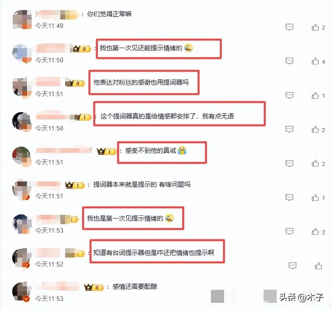 离谱!现在的明星演唱会,连给粉丝的感动都是提前预制好的?我算是懂了,内娱现在真的是只有想不到,没有做不到! 最近言承旭演唱会上的提词器一曝光,直接把网友看傻了。 本来以为提词器只是用来救忘词的,结果凑近一看,这哪里是提词器,分明是一份“明星舞台表演全流程剧本”! 除了常规的歌词,连跟粉丝说的真心话都完整写好了,甚至连什么时候要“深深吸一口气”、哪里要“眼眶微微泛红”、哪一句要“带哭腔”、什么时候“停顿3秒”,都标得明明白白,连表情管理、情绪起伏都给你安排得死死的。 这不就是演唱会版的预制菜吗? 我们平时骂预制菜,骂的是它把所有的调味、火候、步骤都提前定死,加热一下就能端上桌,没有一点锅气,没有一点现做的鲜活感。 现在的演唱会更离谱,连歌手的情绪、对粉丝的深情、现场的感动,都提前给你预制好了,歌手只需要照着提词器演就行,连一点即兴的、发自真心的东西都没有。 观众花几百上千块买门票,不是来看你对着提词器念剧本的,是来感受现场独有的、双向奔赴的共情的。 结果你连哭都是演的,连感动都是按提示走的,这和花钱看一场提前录好的AI表演有什么区别? 以前我们骂假唱,是骂歌手连声音都敢骗观众;现在倒好,直接升级成“假情绪”了。 假唱至少还能听个响,现在连深情都是剧本,连眼泪都有KPI,这不是唱歌,是走流程完成表演任务。 连对歌曲的情绪理解、对粉丝的心里话都要靠别人标出来,你到底是歌手,还是照着剧本念台词的提线木偶? 哪怕后来阿信出来澄清,说这些标注是帮内向的言承旭控制情绪,怕他上台紧张失控。 可我还是想问:如果连上台说的真心话、流露的情绪都要靠提示,那这份感动,到底是真心,还是完成任务的表演? 现在的内娱,真的越来越本末倒置了。歌手不用会共情,只要长得好看、会按着剧本演就行;演员不用会入戏,只要会念数字、有流量就行。 可观众要的从来不是完美无缺的预制表演,是带着真心的、有温度的现场啊。 你能接受演唱会连情绪都要提前预制吗?评论区聊聊。