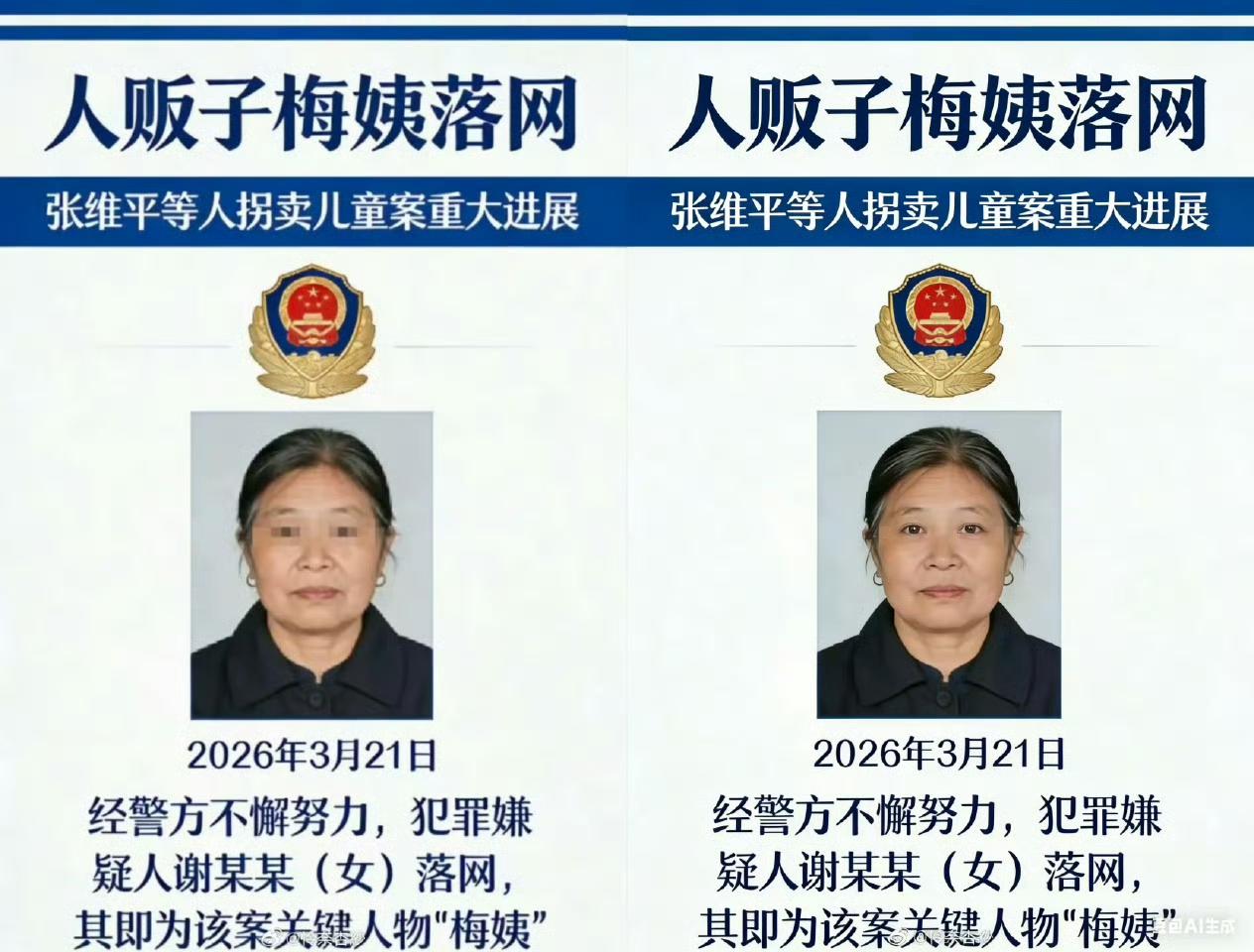 人贩子“梅姨”落网了。7年了,这个让无数家庭支离破碎的名字,终于被摁在了法律的案板上。 3月21日,退休警察、模拟画像师林宇辉激动地说:“7年来就盼着这一天。”当年,他根据与“梅姨”同居老汉的描述,一笔一笔画出她的第二张画像。受害家属拿着画像去她出入的地方,当地人一眼认出:“这就是阿梅。” 可怕的是,“梅姨”在社会上没留下任何一张照片,到哪儿都不出示身份证。她像影子一样活着,躲了这么多年。 网友看完又气又叹:“一张照片都没有,她是人是鬼?”“画像是唯一的线索,林警官太牛了。”“7年,多少孩子错过了最佳寻回时间。” 有人说,“梅姨”落网不是终点,而是起点。那些被她拐走的孩子,还能找回来吗?那些破碎的家庭,还能拼得回去吗? 一张画像,画了7年;一个案子,追了7年。林宇辉用画笔追凶,受害者家属用眼泪等待。好在,恶人终究没能逃过。 “梅姨”没有照片,但她的罪行,全国人民都记得。