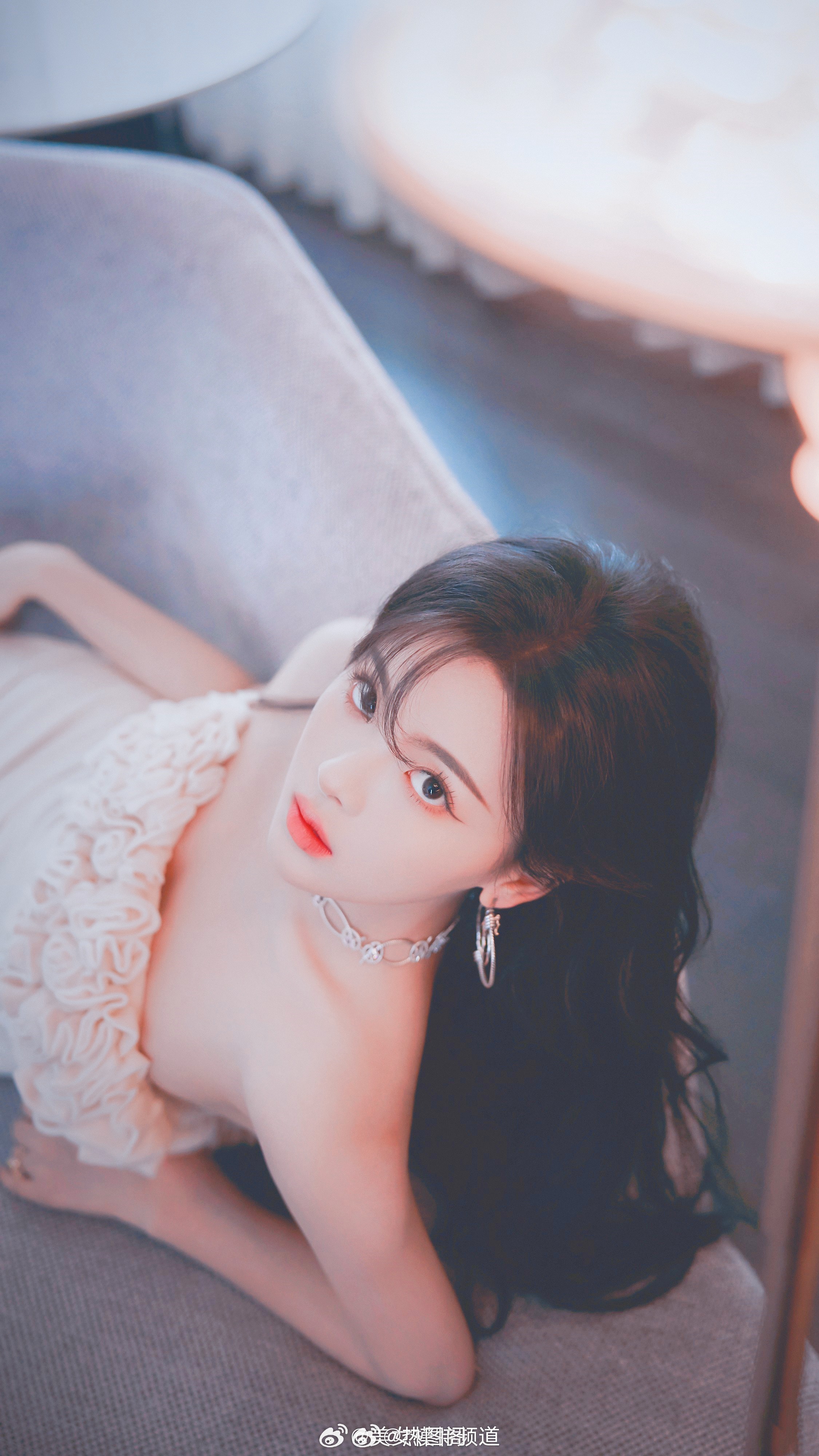 杨超越蓝色蕾丝抹胸裙 热图阁公众号
