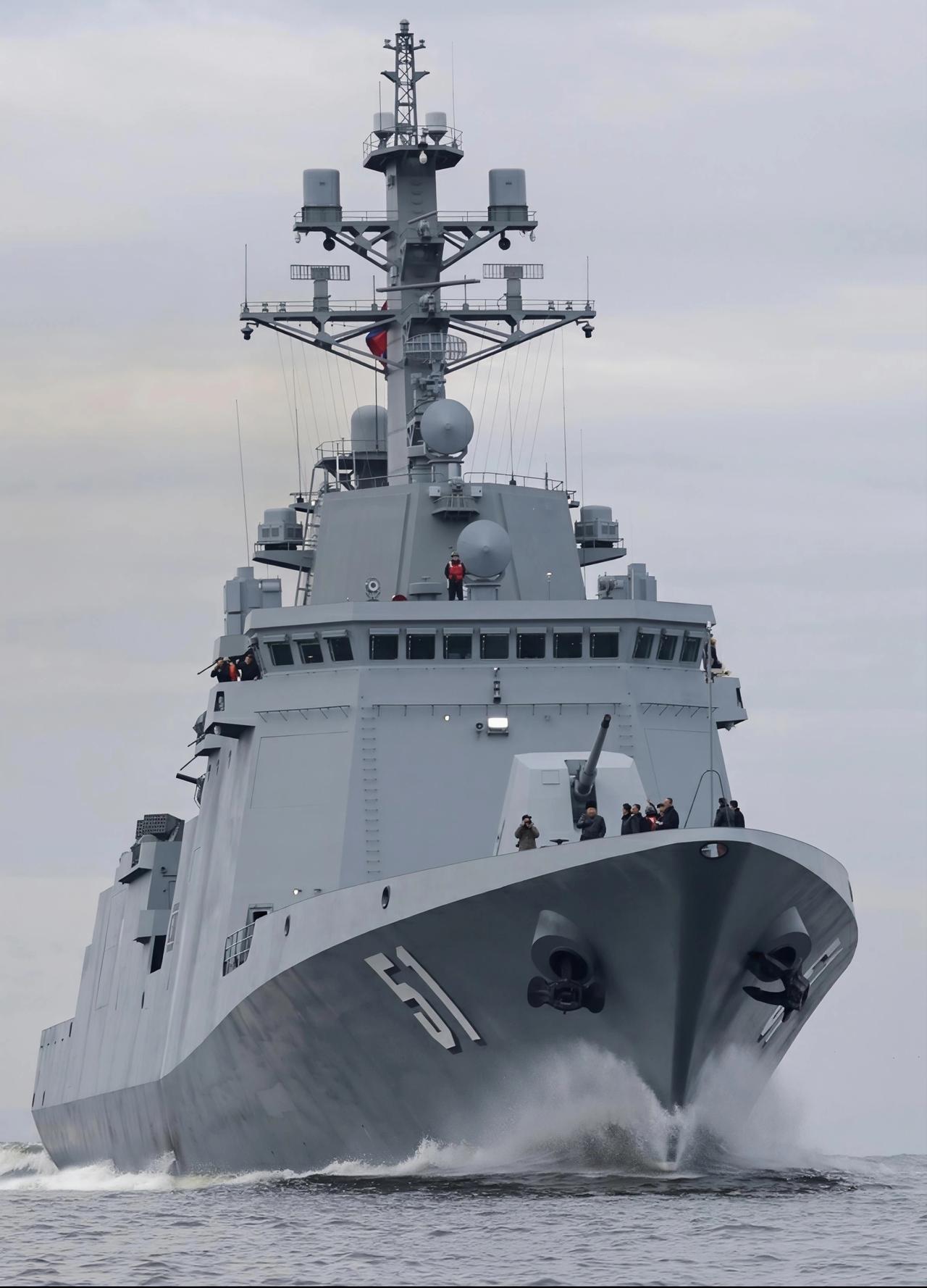 能装垂发的空间,全部装上了垂发,崔贤号驱逐舰就是一款小型武库舰! 朝鲜海军崔贤号驱逐舰排水量5000吨左右,但垂发数量高达88个,可以说整艘舰艇没有任何多余的空间,所有能装垂发的空间,全部安装了垂发系统。 崔贤号驱逐舰前甲板24部垂发,后甲板64部垂发,其中后甲板有24部大口径垂发,可以发射远程巡航导弹,这个火力配置甚至不亚于美国海军1.4万吨的朱姆沃尔特级驱逐舰。